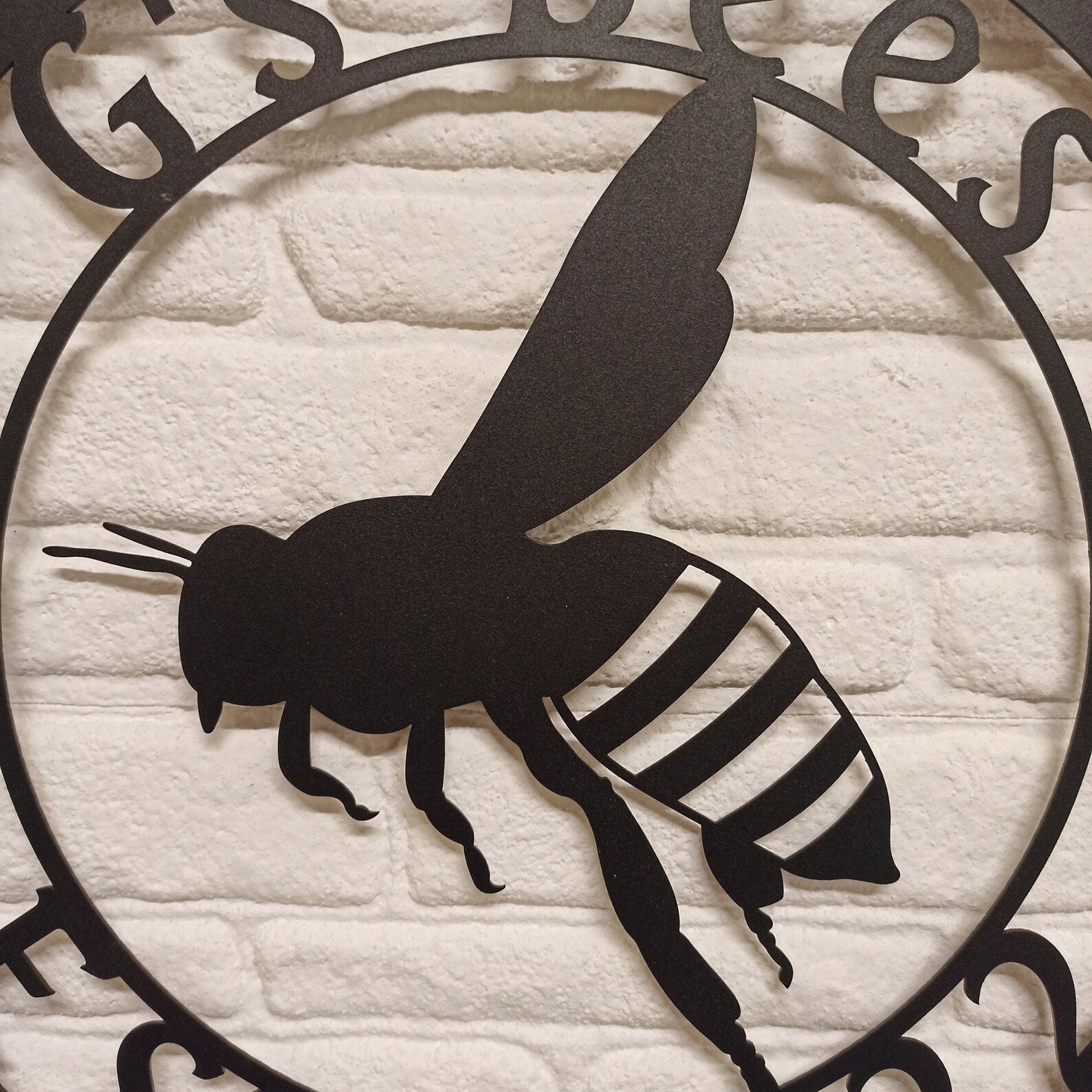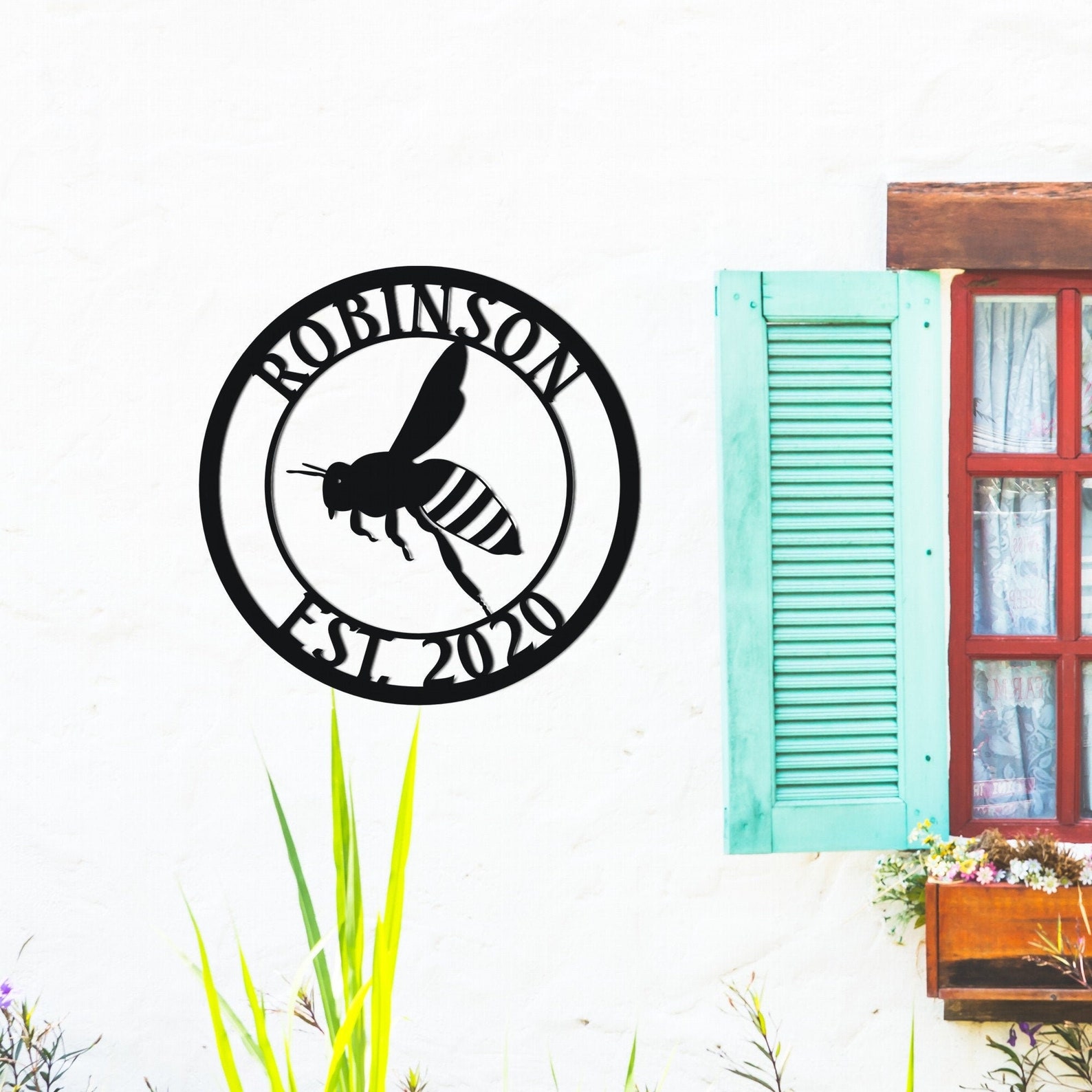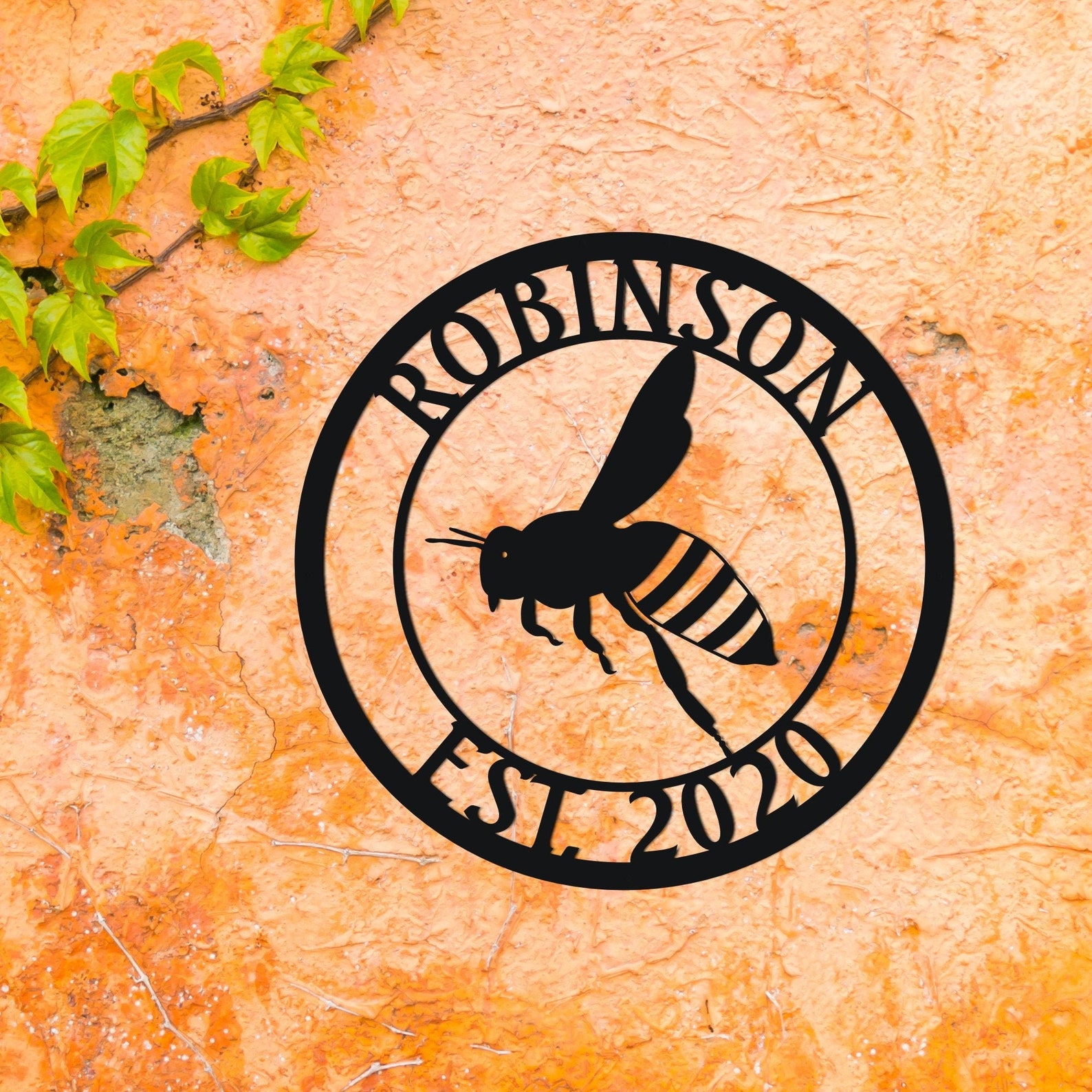 Honey Bee Sign – Personal Metal Family Name, Bee Farm Decor