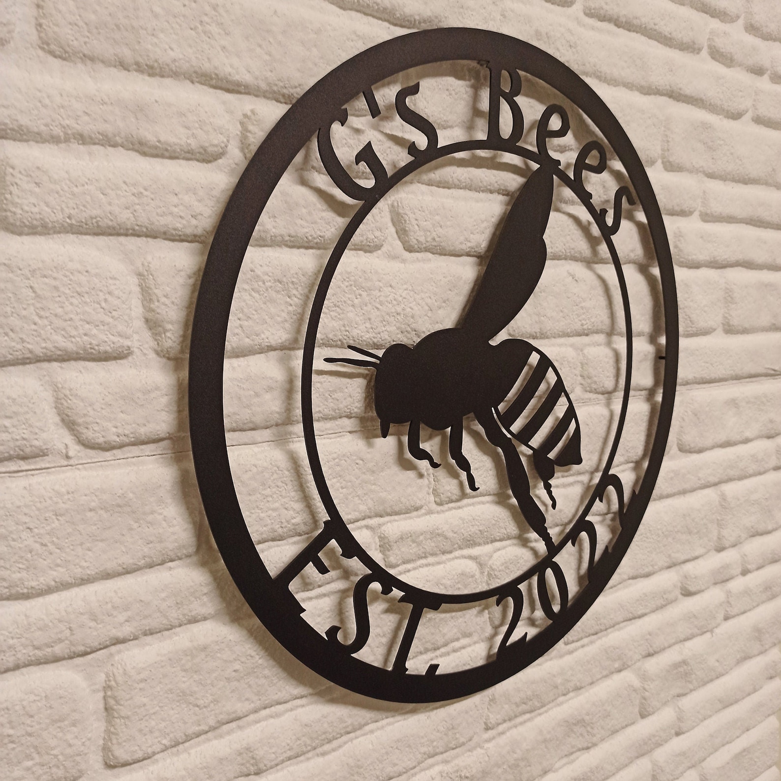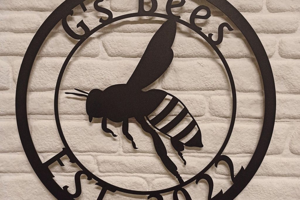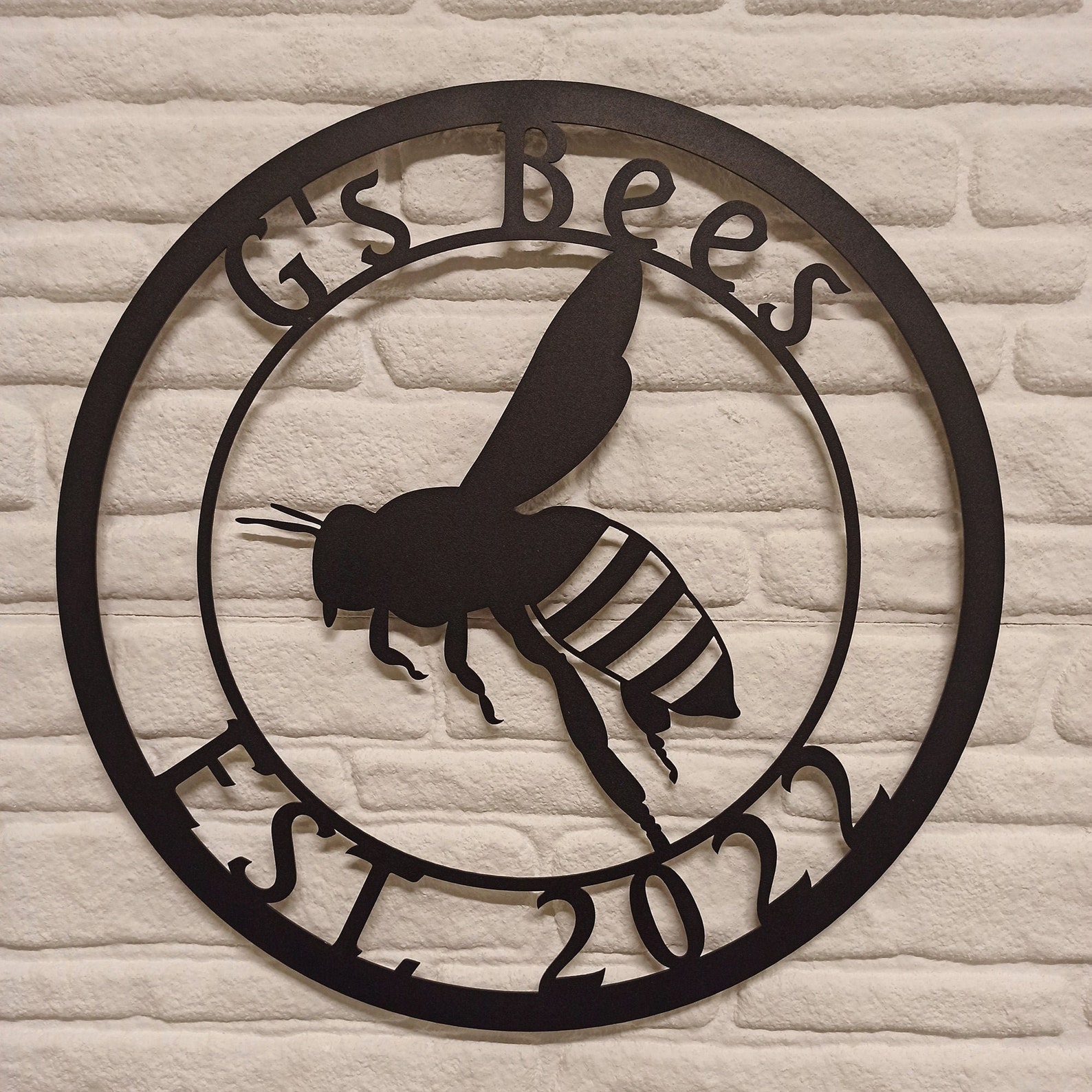 Honey Bee Sign – Personal Metal Family Name, Bee Farm Decor