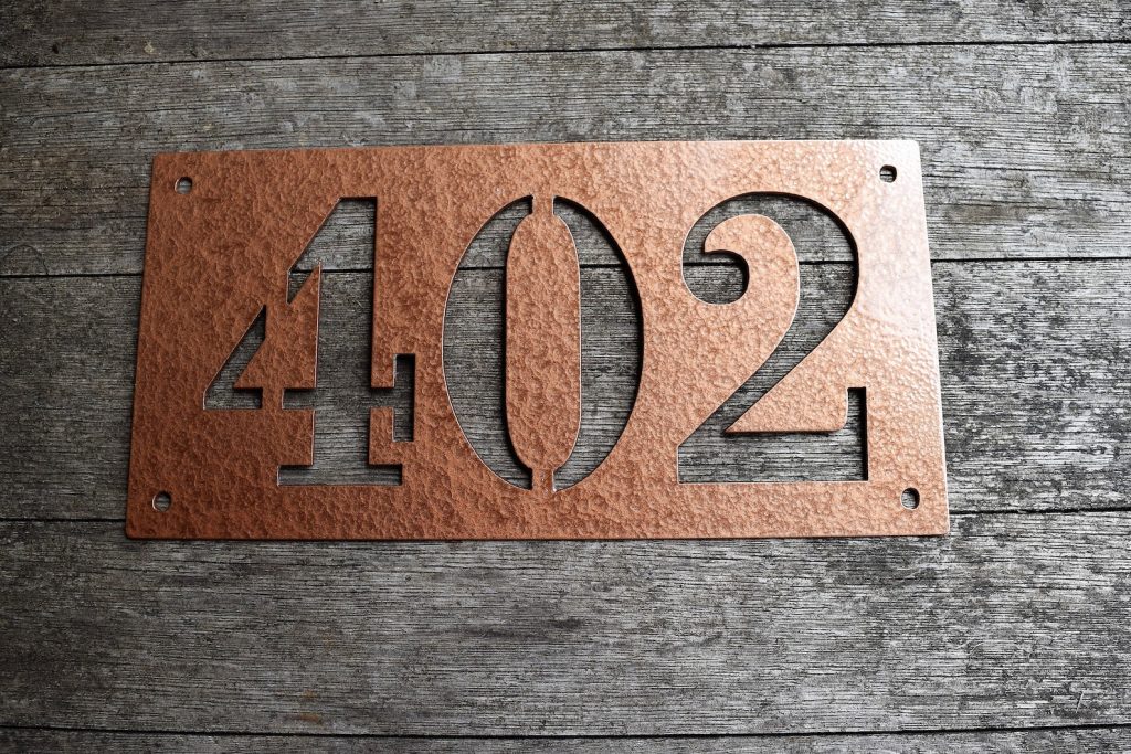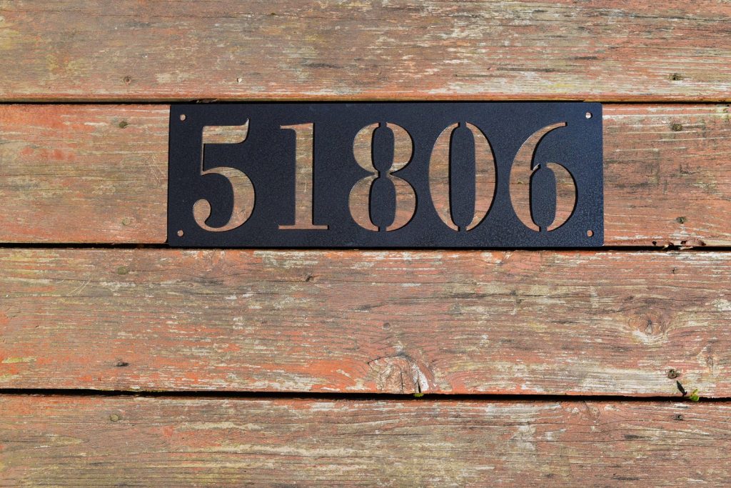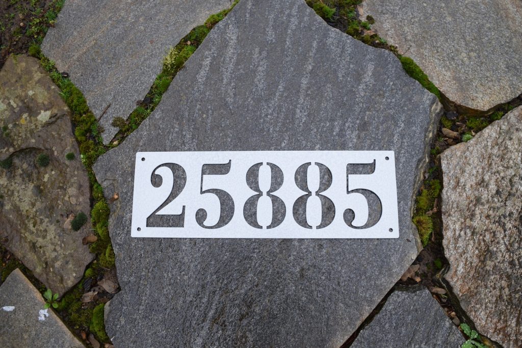 This is a custom metal address sign. It has pre-cut holes for easy installation and made from steel. This product is personalized with your own house number and will make a great addition to any front porch or mailbox.