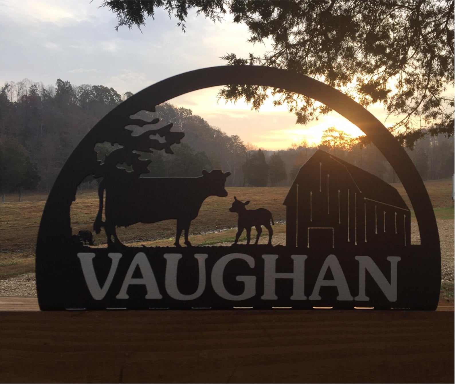 Name is vinyl lettering so can be seen on both sides or optional cut out letters if only one side is needed.
