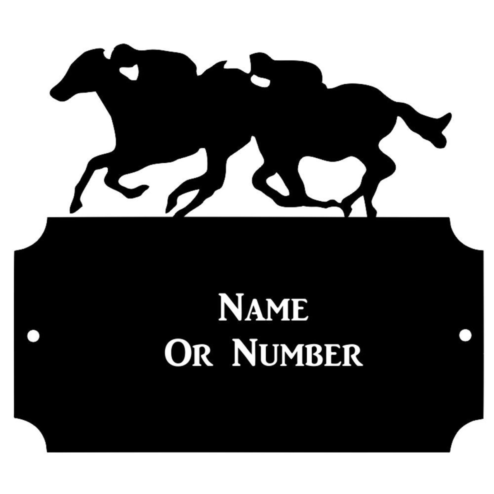 Be the first to review “Horse Racing Metal House Number Plaque – Black Address”