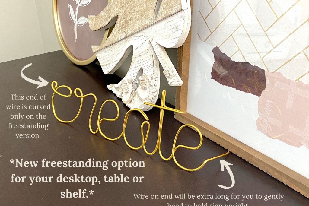 tFreestanding – Extra wire will be left on the end for you to gently bend until sign can stand on it9;s own.