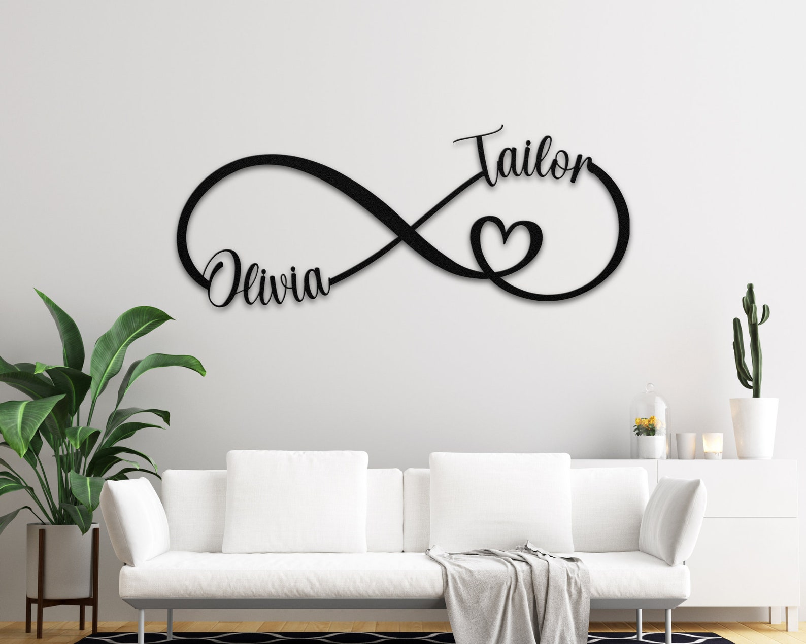 Enhance your home decor with this beautiful custom infinity metal sign. This couple name metal sign is laser cut from a 18 gauge steel, which is powered coated further to make it smooth and durable!