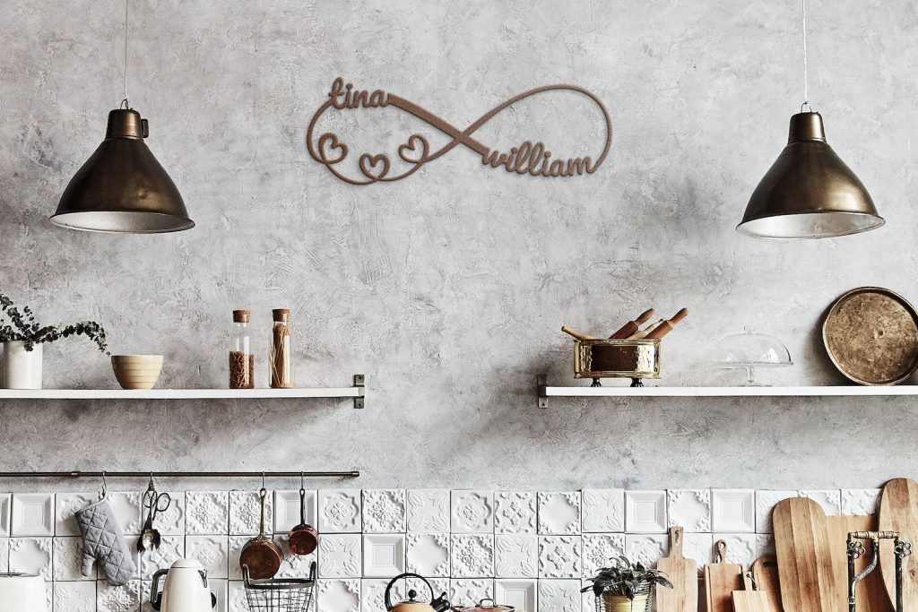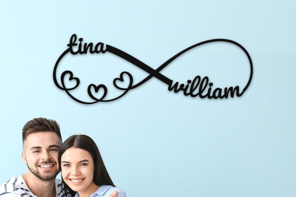 Enhance your over the bed decor with the trendy infinity heart sign. This personalized infinity sign is made up with 18 gauge steel which is durable and environment resistant. It will give the touch of elegance to your wall by adding this steel sign inside, outside or any place of your choice!
