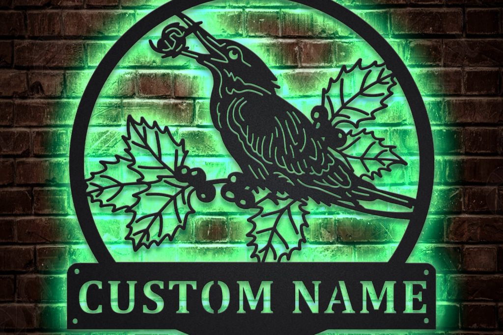 Kingfisher Bird Metal Sign with LED V3 – Wall Decor