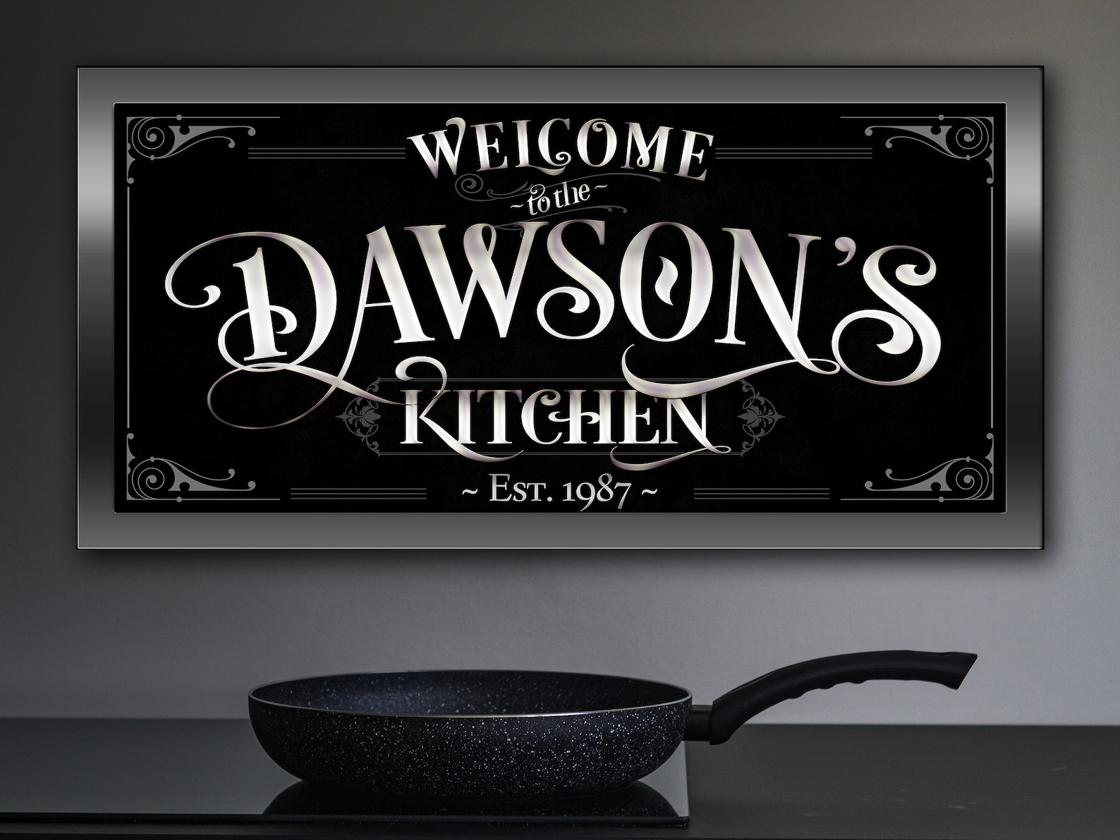 I9;ll personalize this Black & White Kitchen Sign with your last name and established year. This makes a great gift for her and even a housewarming gift for a friend. This personalized kitchen sign is very unique and can be cherished and viewed forever. Thank you for your interest!