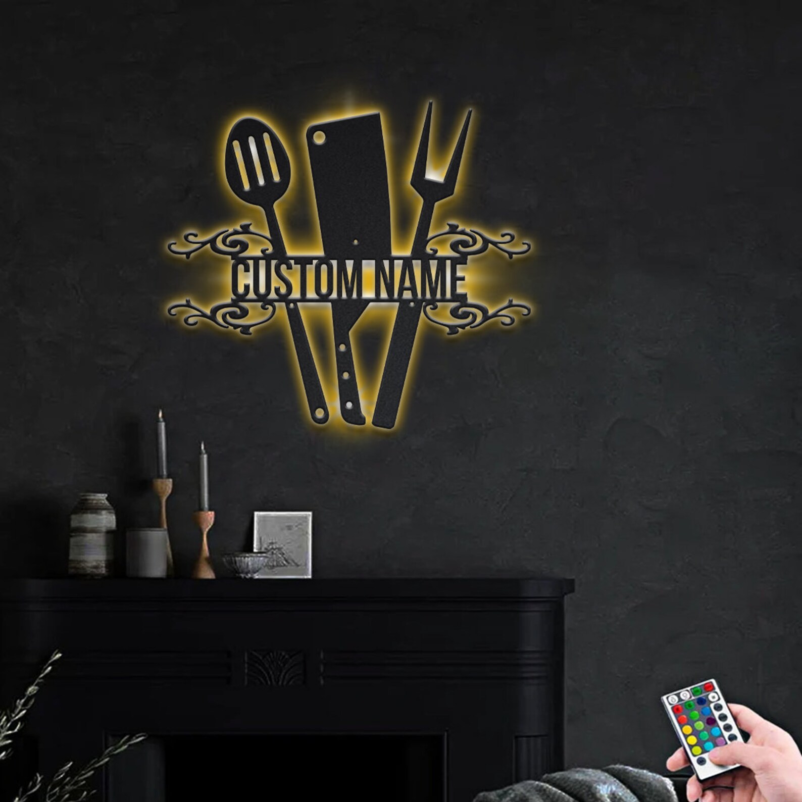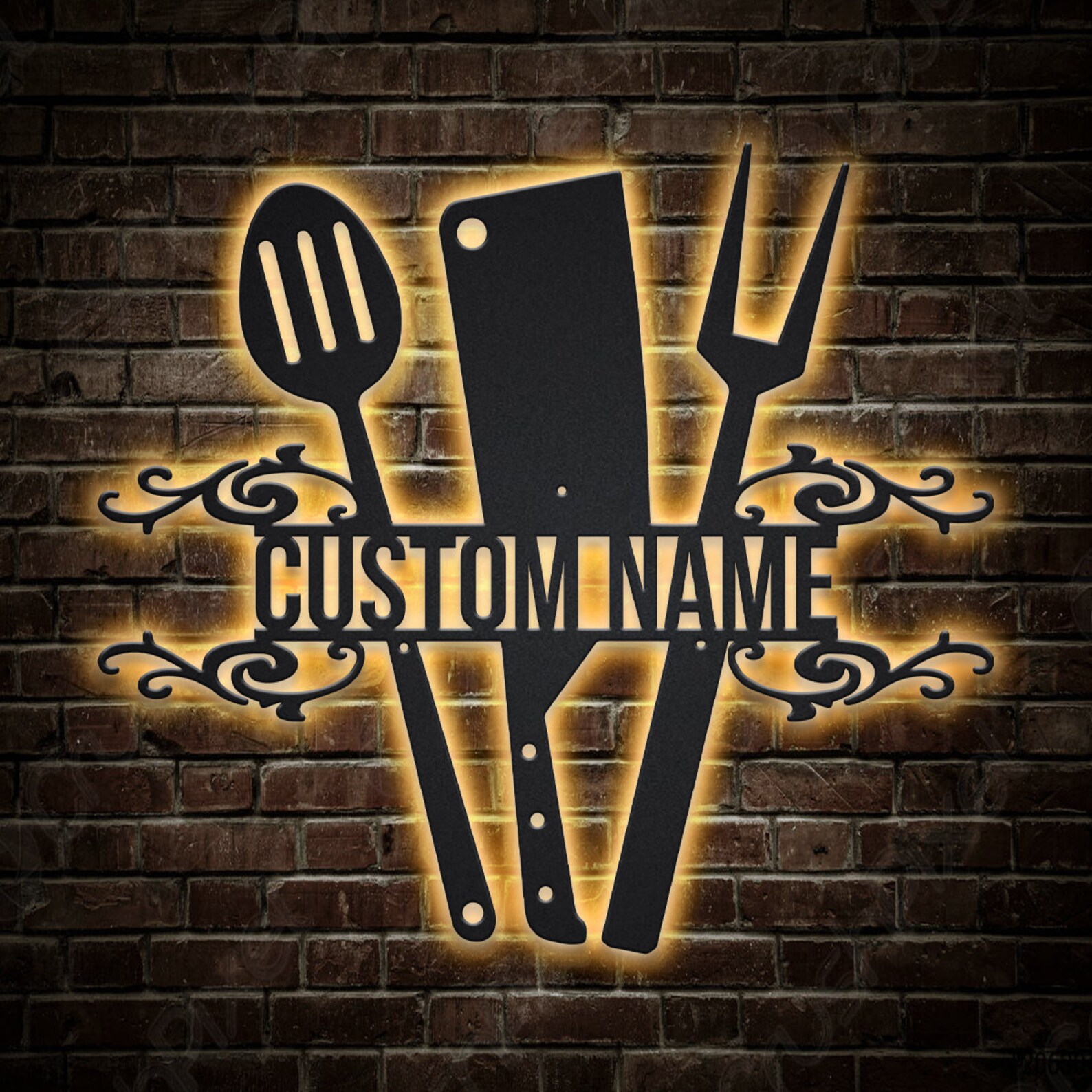 Kitchen Utensils Metal Sign with LED, V14