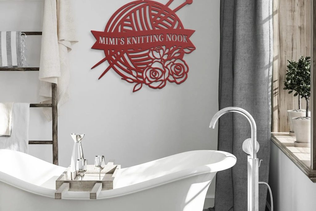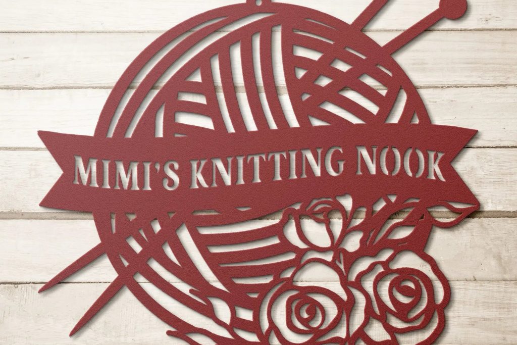 Knitting Nook Metal Sign – Personalized, Mimi, Grandma, Nana, Name Knitting Wall Art, Crochet Decor, Knitter Gift