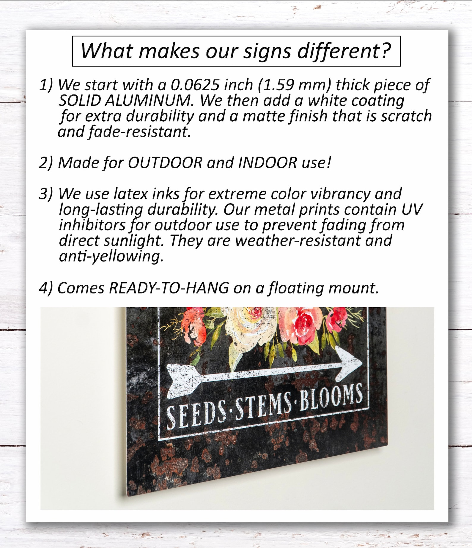 MATERIAL and FINISH: Toe Fish Art9;s metal prints are 0.0625 inch (1.59 mm) thick white-coated aluminum with a matte finish, providing a unique vintage style. Superior in quality, our signs are a *SOLID SHEET* of aluminum metal (-not- a fabricated, hybrid product of