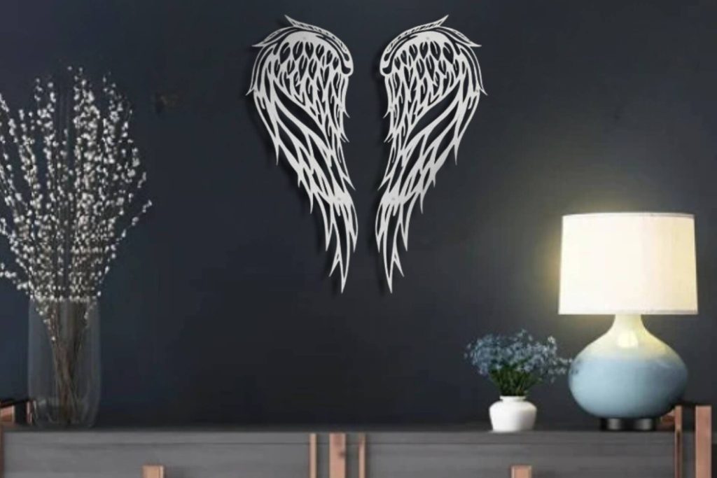 This minimalist metal wall art a best gift idea.You may give this metal wall hanging as wall decoration present on many occasion, for example you may bring it to your mother,your new married friend as wedding gift or best friend as housewarming gift who recently buy a new house or who redecorate her home,your corporate gift for your collegue.This design of one of our wall decor collection may be named as metal angel sign wall hanging,metal angel wall sing,metal interior wall decor,angel wings metal sign, metal angel wings wall decor,memorial day wall hanging,memorial day wall decor,grief day decor,grief and mourring gift,Valentin day9;s gift,nursey wall decor,baby shower gift,angel wings wall sign,angel wings sculpture for wall,