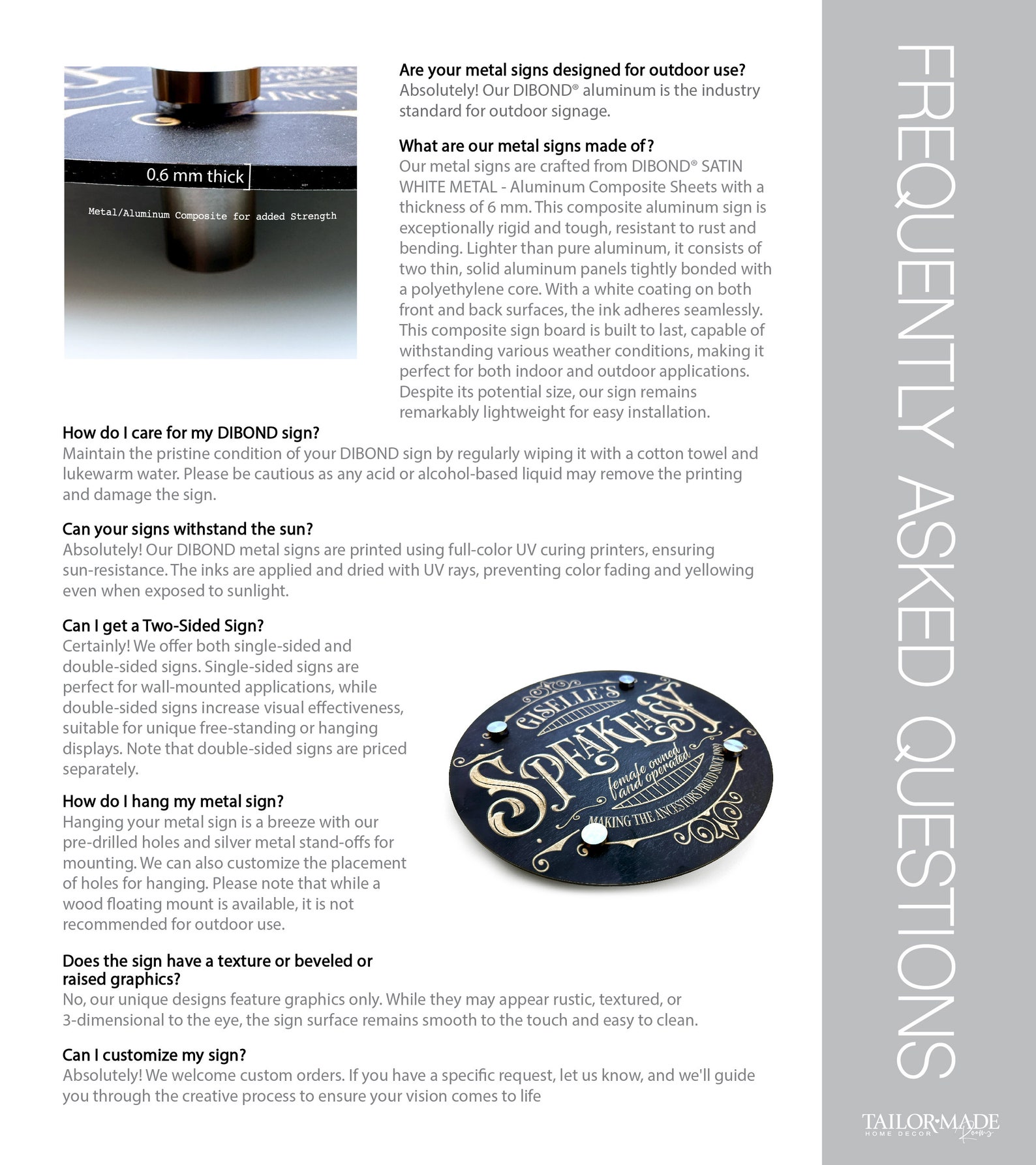 4-6 Metal Stand-offs incl for mounting, 8 for largest signs