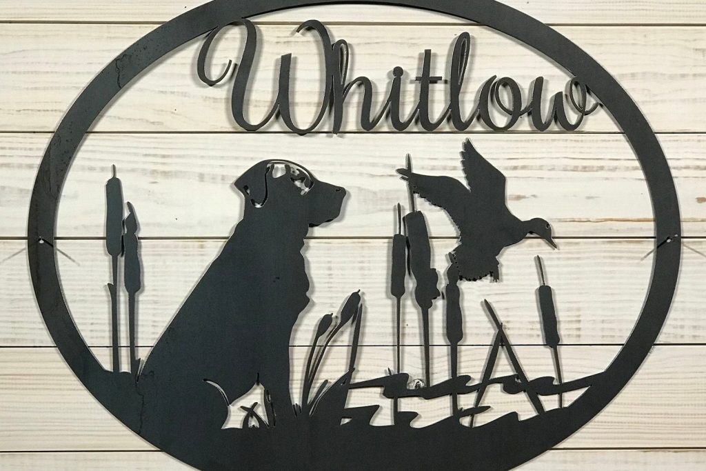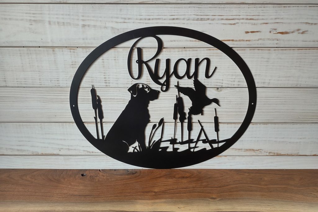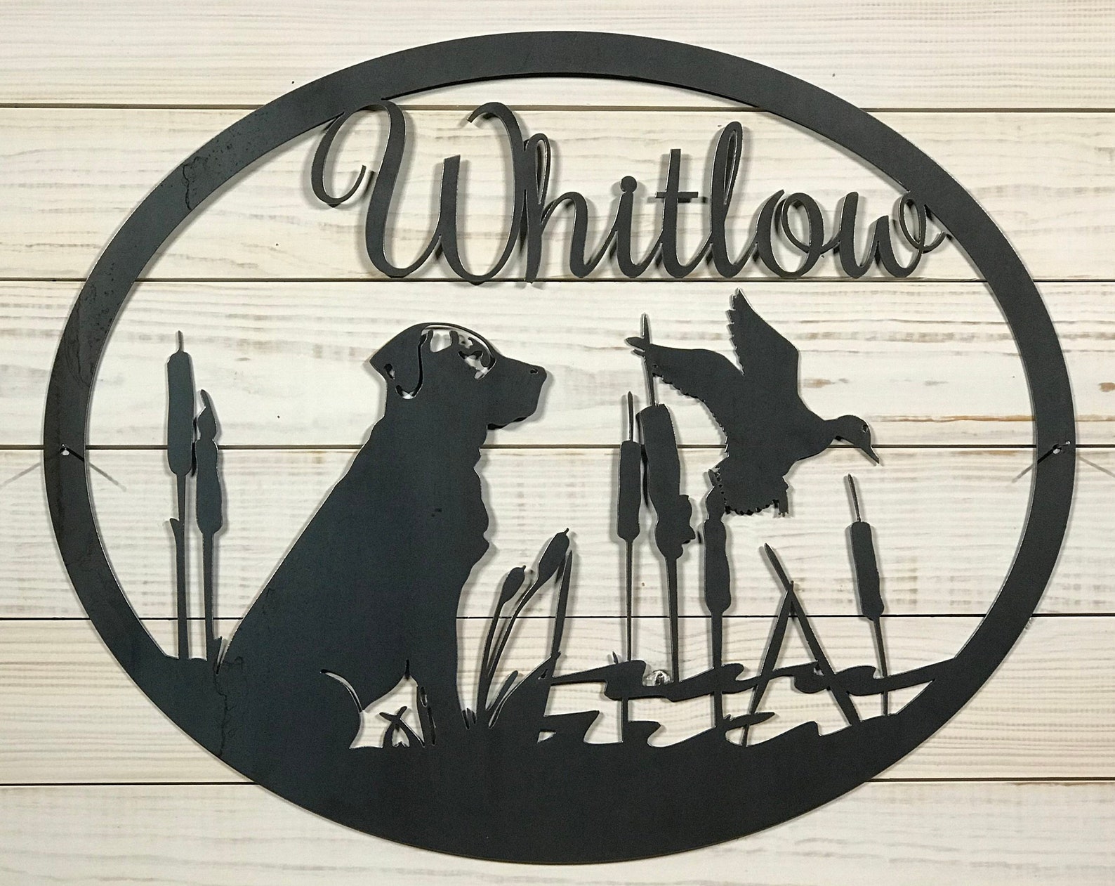 Large Personalized Metal Dog and Duck Hunting Scene Welcome Sign