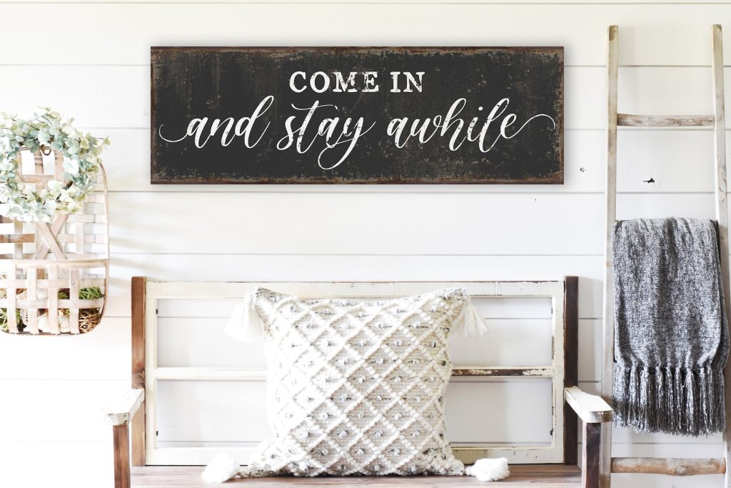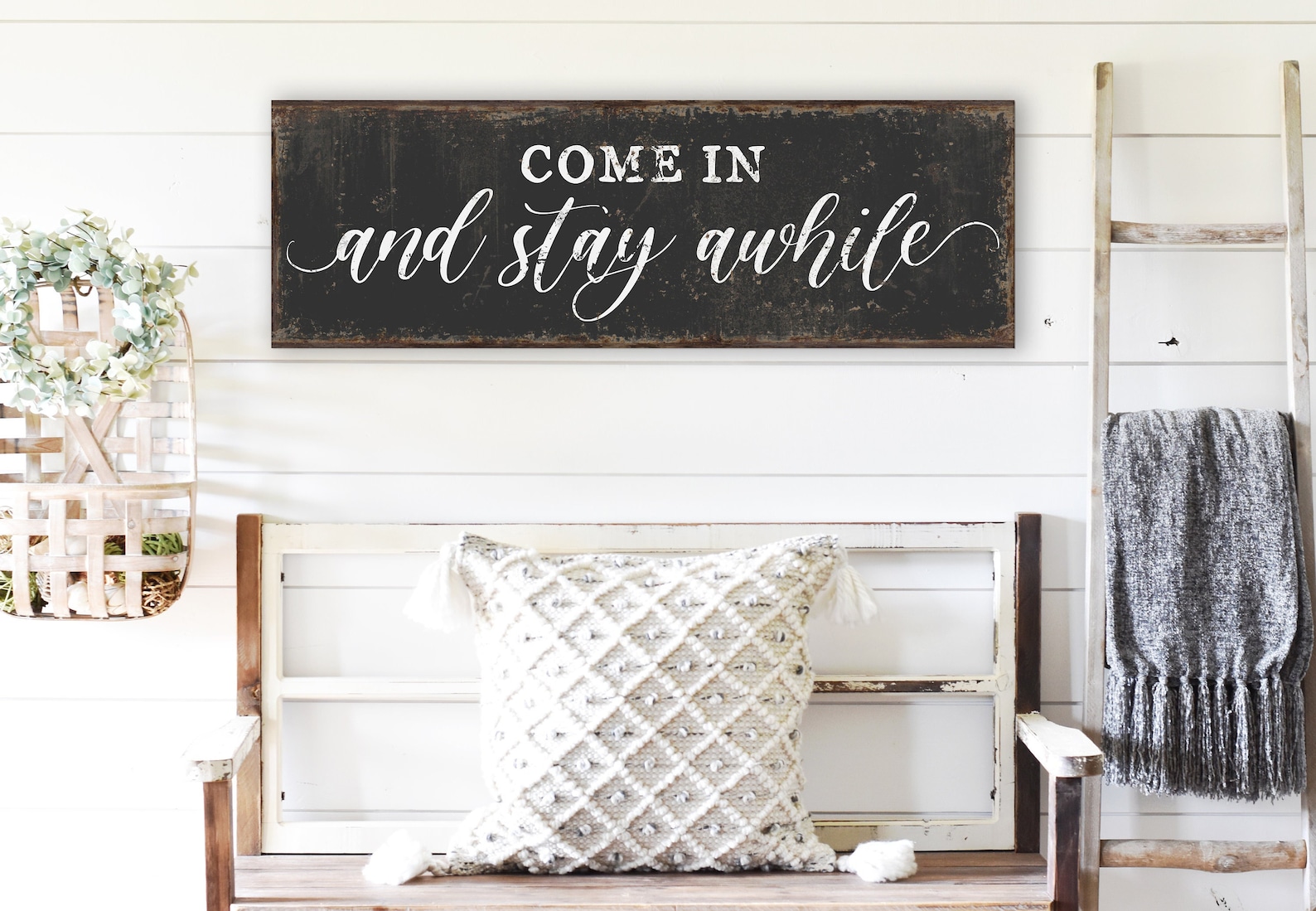 Come In AndtLarge OutdoortWall Art EntrywaytDecor Metal FronttPorch Signs WelcometSign Front DoortModern FarmhousetDoor HangertWhite Black WoodtCanvas Family RustictVintage Chic ShabbytPrimitive FrancetStay Awhile French