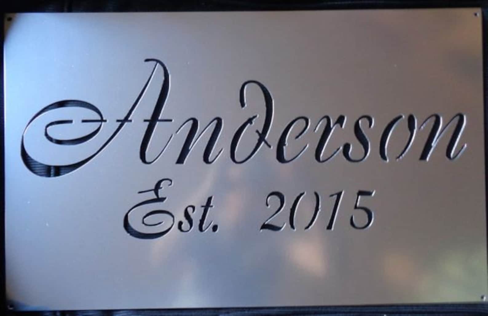 WHEN YOU PLACE YOUR ORDER: PLEASE LEAVE NOTE TO SELLER WITH NAME YOU WANT ON SIGN. PROOF WILL BE SENT TO YOU AFTER PURCHASE FOR YOUR APPROVAL. We will wait 24 hrs before we cut the sign. NOTE! If you order brushed metal, it will rust within a short time since theres no UV block, unlike black which is a solid finish