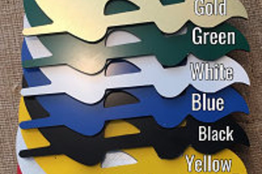 Our Dcor is made from a unique material we call Metal ACM. ACM is an Aluminum Composite Material and is WEATHER PROOF AND LIGHTWEIGHT. IT IS NOT HEAVY STEEL METAL! With our options for hangers/holes, we make it easy to decorate your home (inside or outside) with our Metal ACM Dcor! Our customers have used our dcor on their mantels, patios, gates, fences, barns, siding walls, garages, foyers, etc. This material is used for business signage and perfect for outdoors and direct weather. Choose from a variety of colors. You can also change the color with Rustoleum spray paint. Although from a distance the dcor looks similar to steel signs, PLEASE NOTE: This is NOT heavy steel metal and will not rust. See our other listings for a variety of sizes 12, 14, 18, 24.