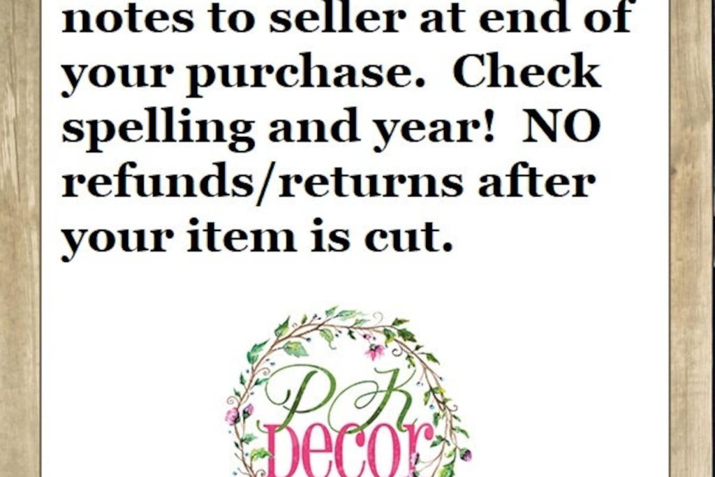PERSONALIZATION: Only ONE initial in the background and ONLY Year, no dates, for Established year. Leave ONLY customization needed for dcor in image you are purchasing. TOO MUCH CUSTOMIZATION WILL BE LEFT OFF. Leave customization AS YOU WANT IT CUT (Smith Smiths The Smiths Smith Family). NOTE: Names show up nicer with fewer letters, we recommend leaving off "The" when possible. We are NOT responsible for typos or grammatic errors you make. For names with 2 capital letters it will be cut as follows unless you specify differently in order LeBeau will be cut LeBEAU in sign. Double last names – we cannot do a hyphen in the middle.