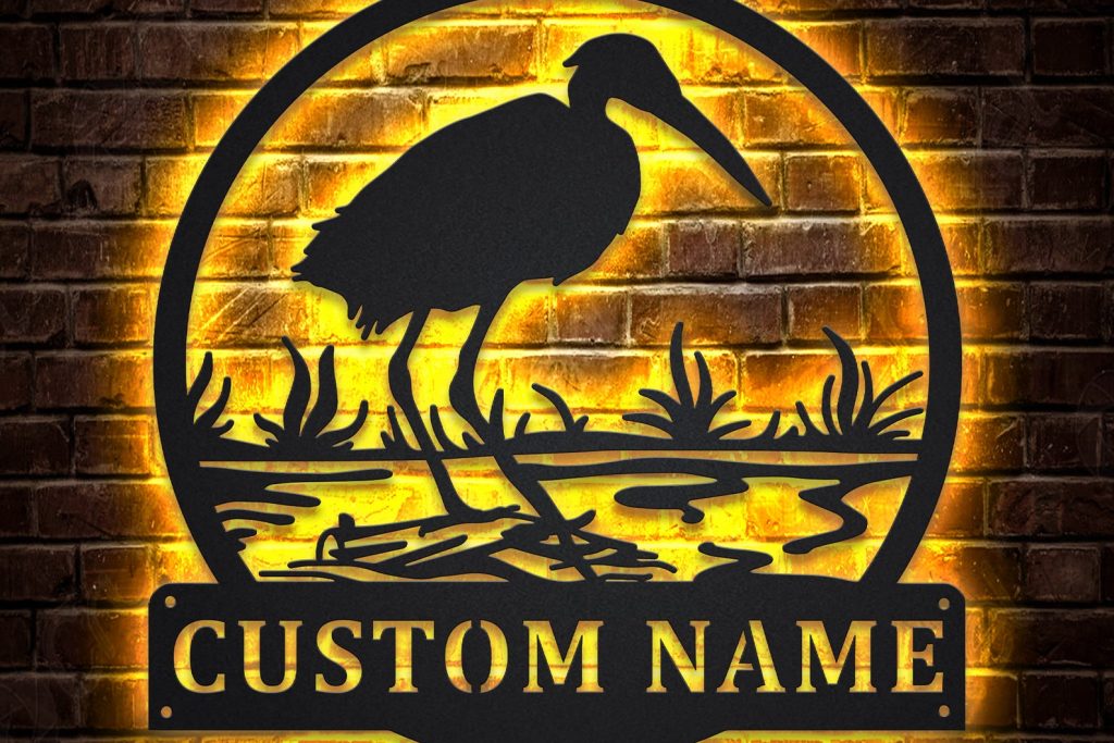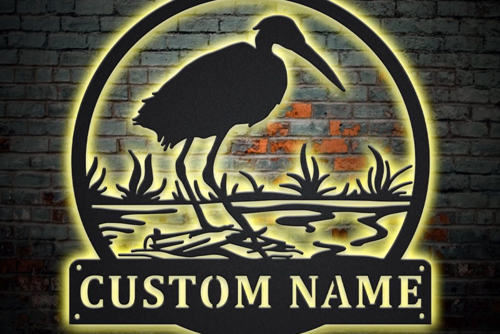LED Egrets Metal Sign – Custom Bird Wall Art V5