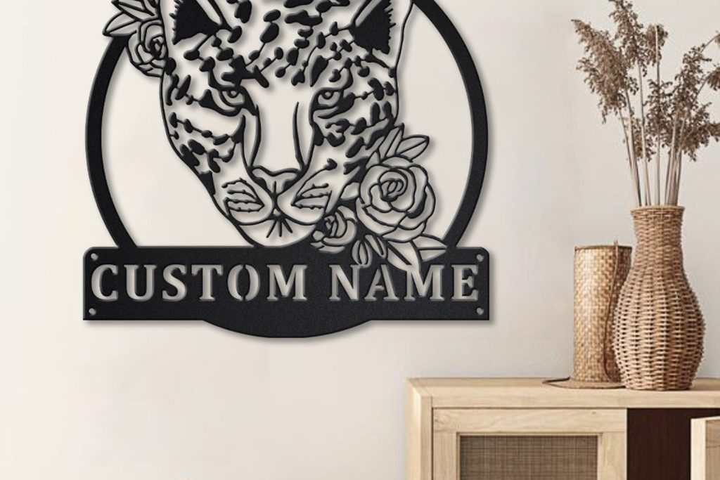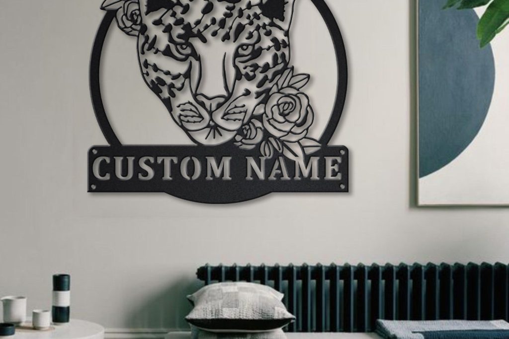 Leopard with Flower LED Metal Sign – Custom Leopard Decor
