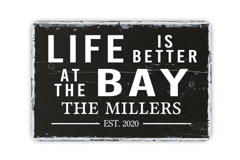 Design: Vintage Style Personalized Life Is Better At The Bay Metal Sign