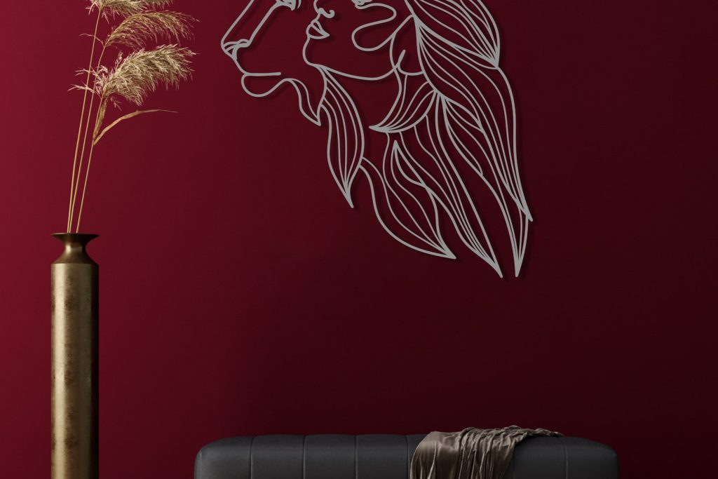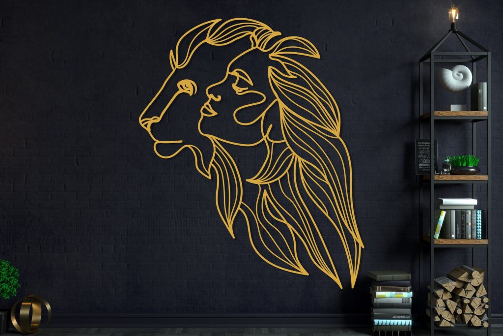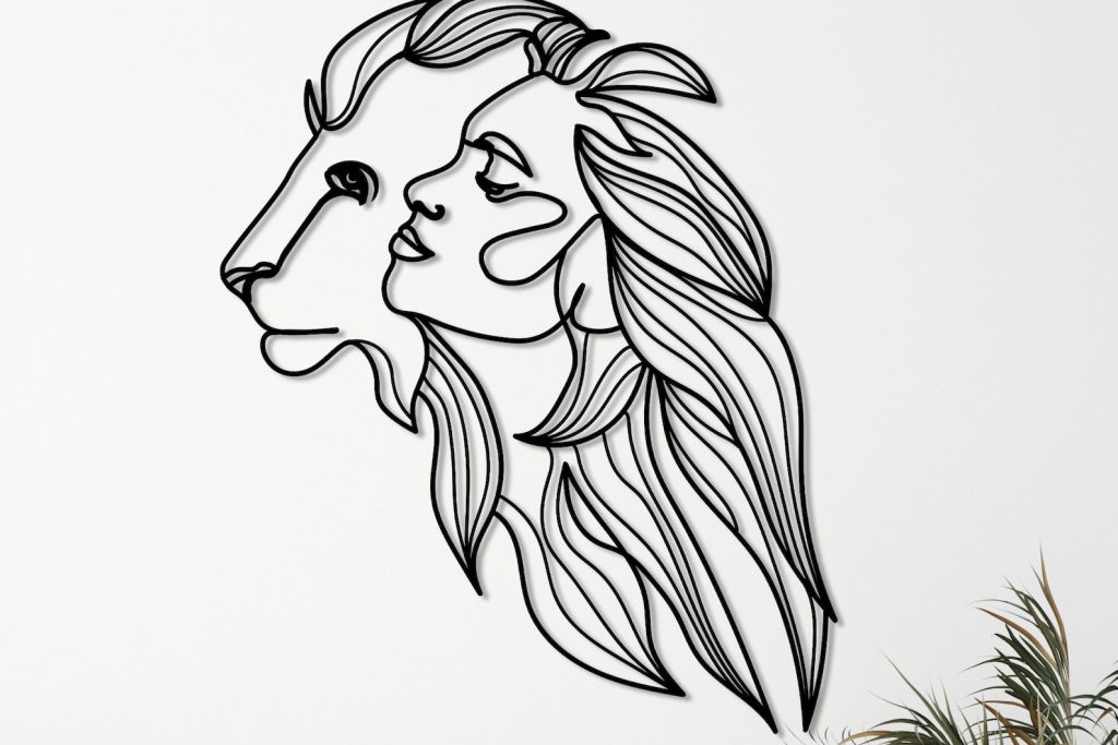 Lion Head with Woman Metal Wall Art, Metal Lion Sign, Unique Home Decor, Modern Minimalist Design Wall Art, Woman Gift, Living Room Office Art