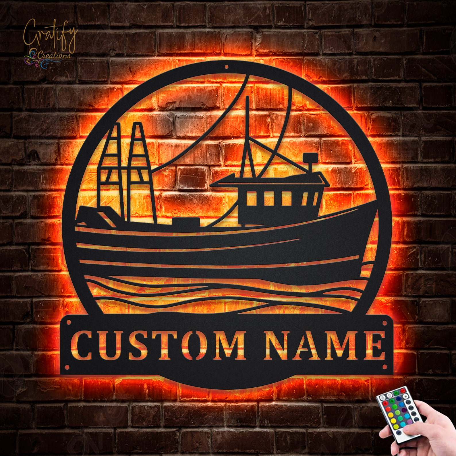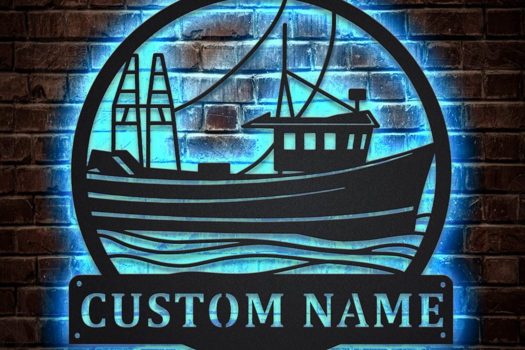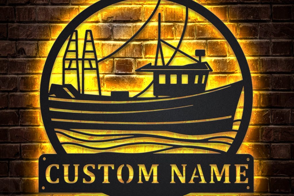 Lobster Boat Sign – LED Custom Metal Lake Decor