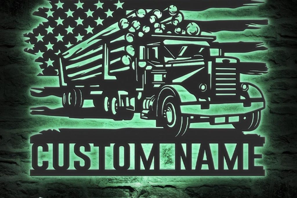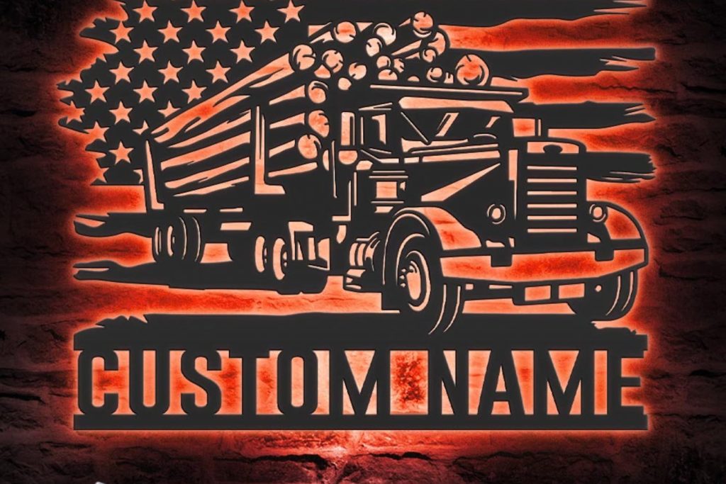 Logging Truck Sign – LED Personal Metal Trucker Decor