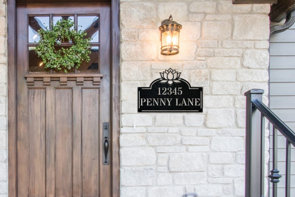 Make your home standout with this personalized Lotus Address Plate: a stunning metal address sign, powder coated for a beautiful, long-lasting finish, including your house number & street name. Ideal for your doorway or a garden wall, it provides a one-of-a-kind accent to your home. Get it now – don9;t wait!