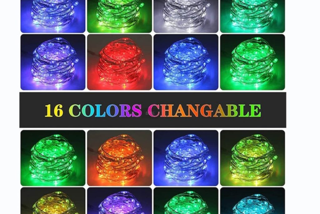 Remote control. You can use the remote control to turn the lights on and off, change the color to one of 16 vibrant colors, adjust the brightness, cycle through the various colors, and set the timer for 6 hours.