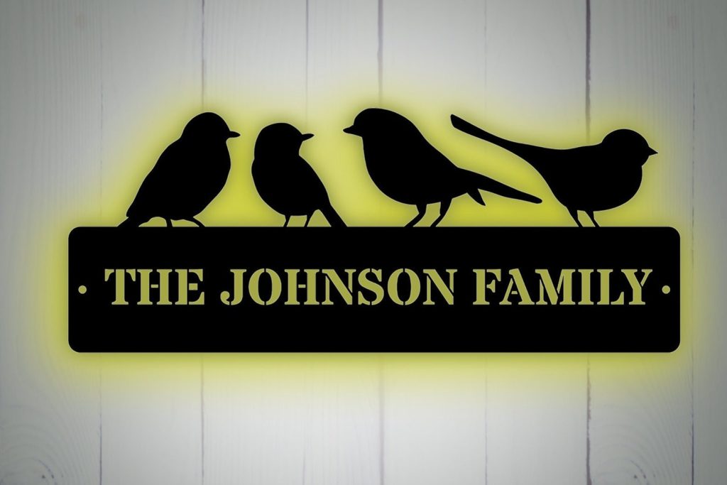 Be the first to review “Magpie Branch Art – Custom Metal Bird Garden Sign with LED”