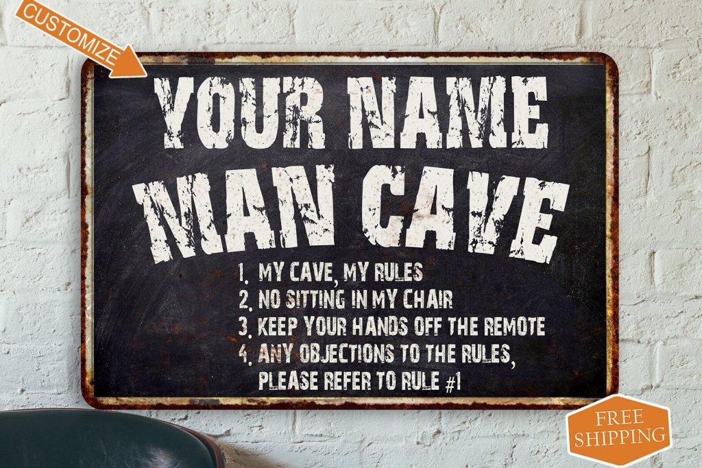 Be the first to review “Man Cave Rules Sign – Personal Metal Grunge Decor”
