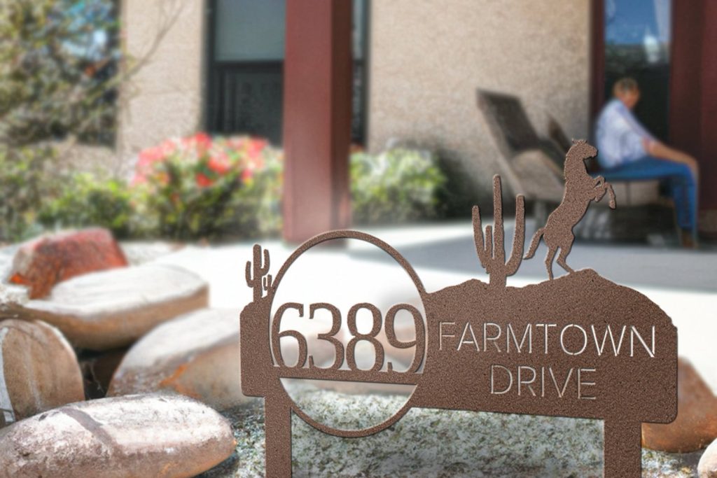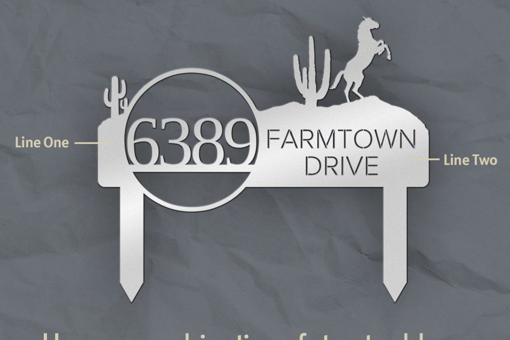 Metal Address SigntStreet address signstFront Lawn ArttStreet Number SigntMetal Signs for YardtHousewarming GifttLarge FarmhousetTexas Style decortcactus Lawn DecortHorse stables cowboytfarm farmertfamily name signstrealtor closing gift