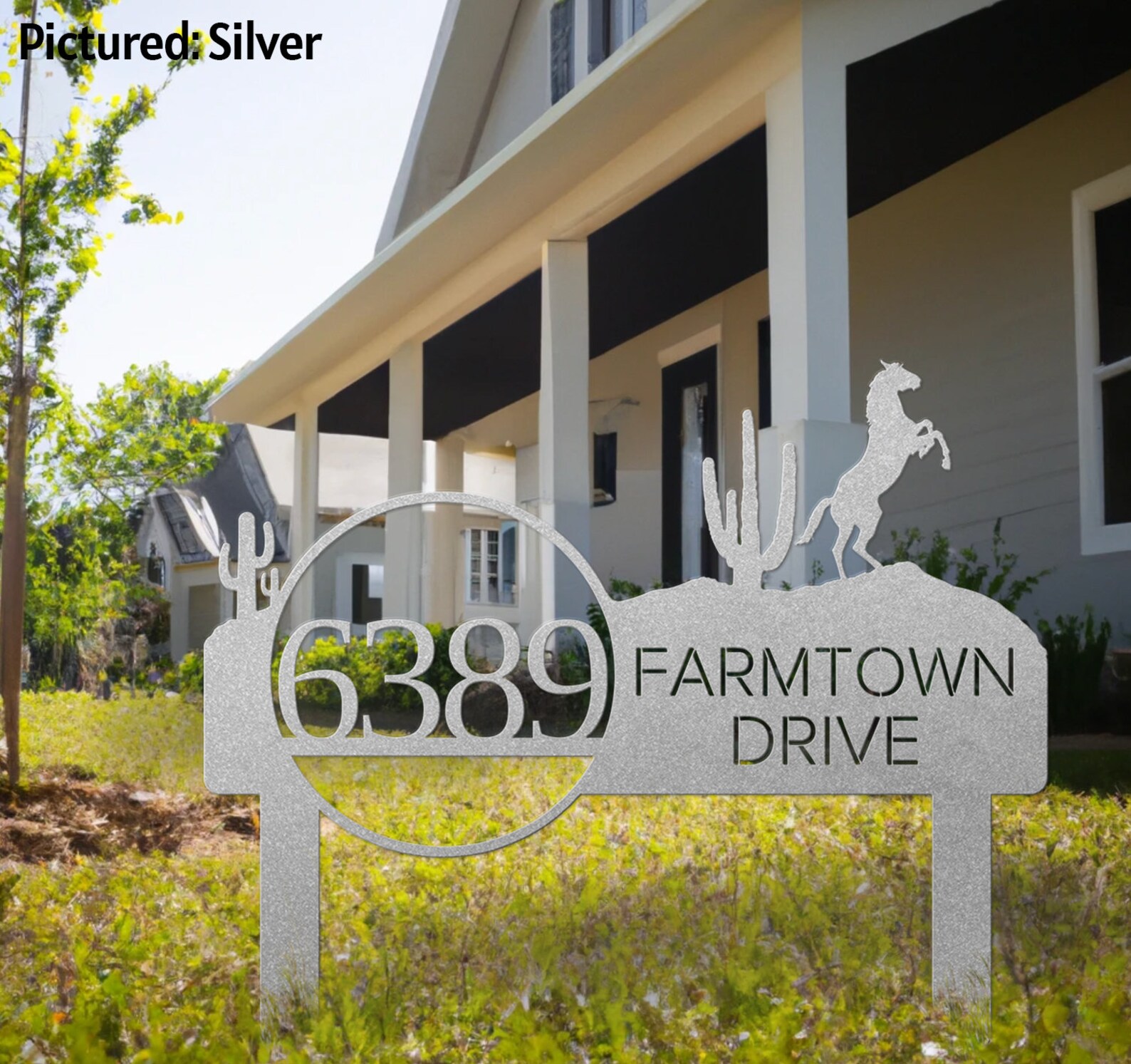 Be the first to review “Metal Address Sign for Front Lawn with Cactus and Horse”