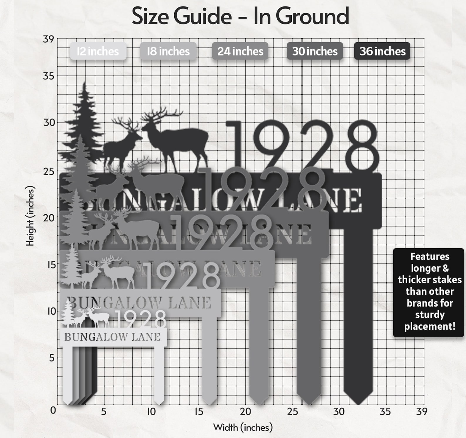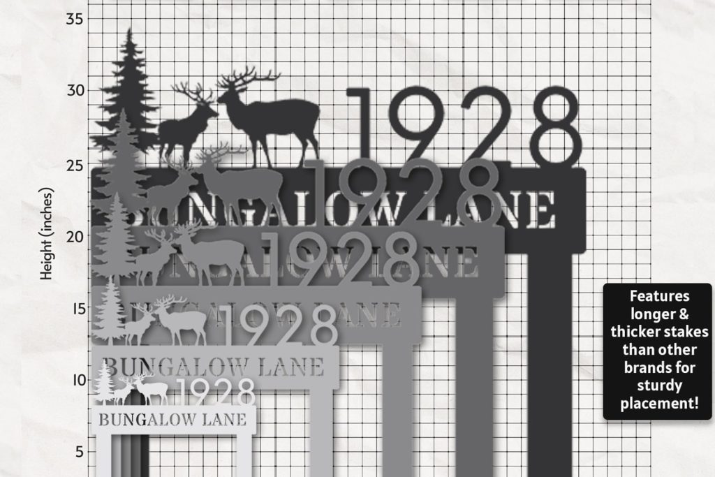 Elevate your outdoor space with our exquisite steel lawn address signs, seamlessly blending nature-inspired designs with functional elegance. At One Bungalow Lane, we take pride in our craftsmanship and personalized charm. Whether displaying your address, family name, or a combination of both, our signs infuse a unique touch into your abode.