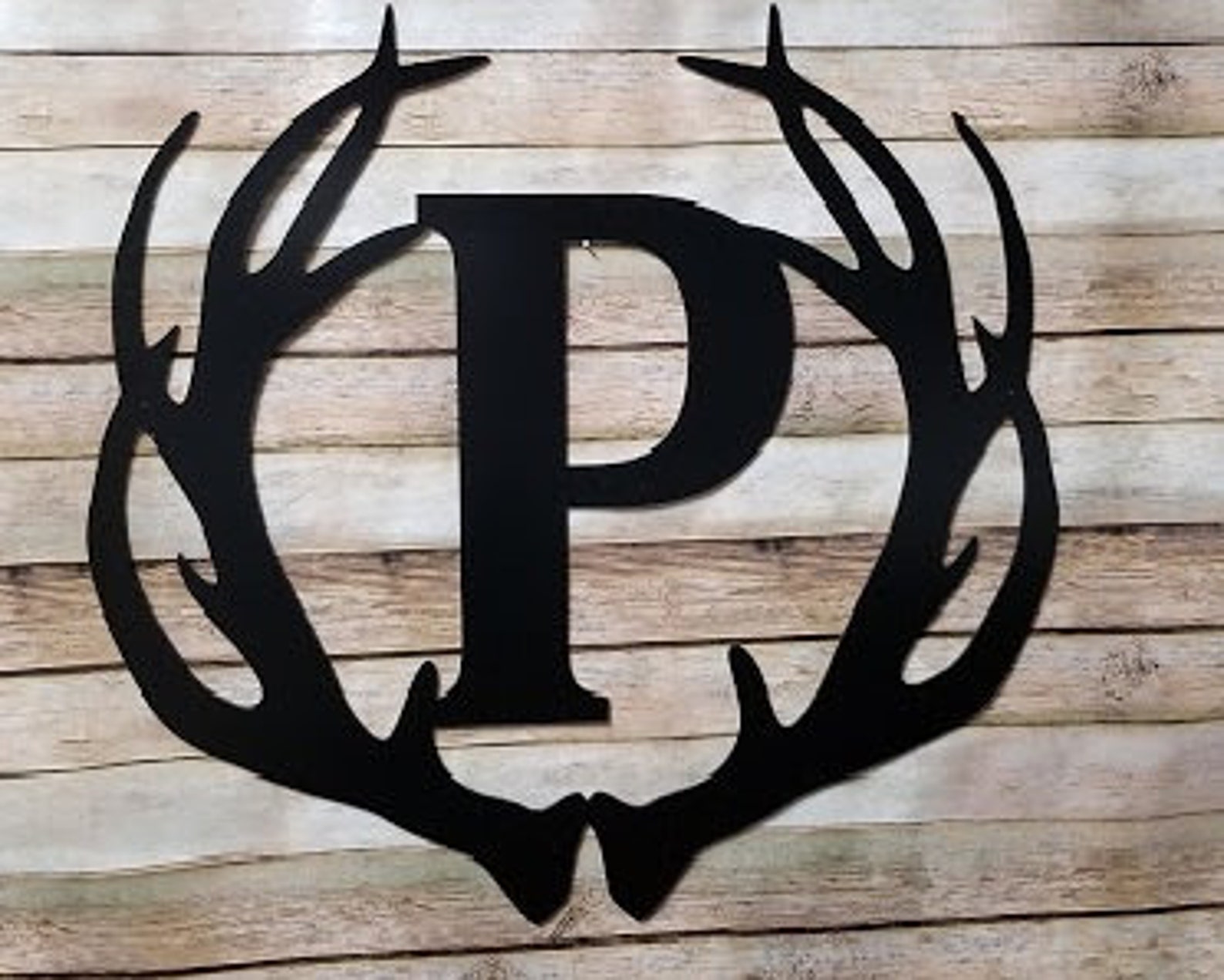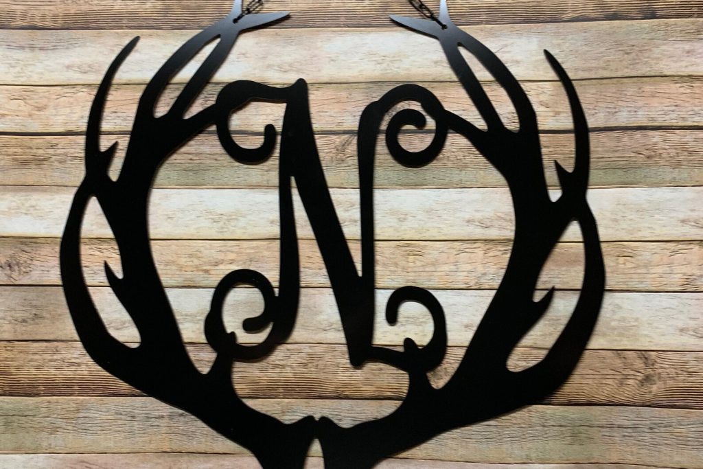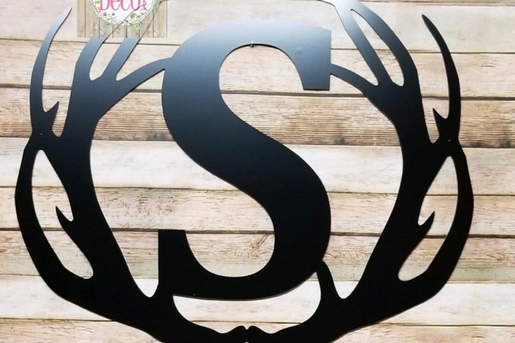 Metal Antler Initial Door Hanger – Deer Man Cave Decor