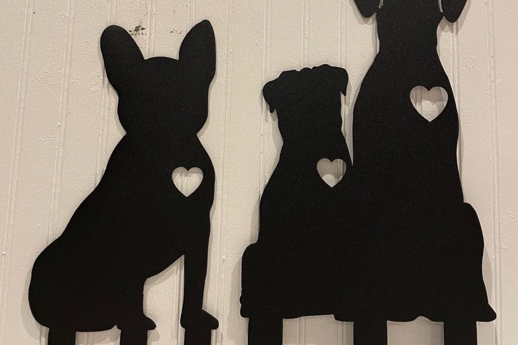 Cute Dog personalized metal yard art sign, made from heavy, durable 16 gauge steel. With high-quality workmanship. Add your custom text, dog or name on the sign.