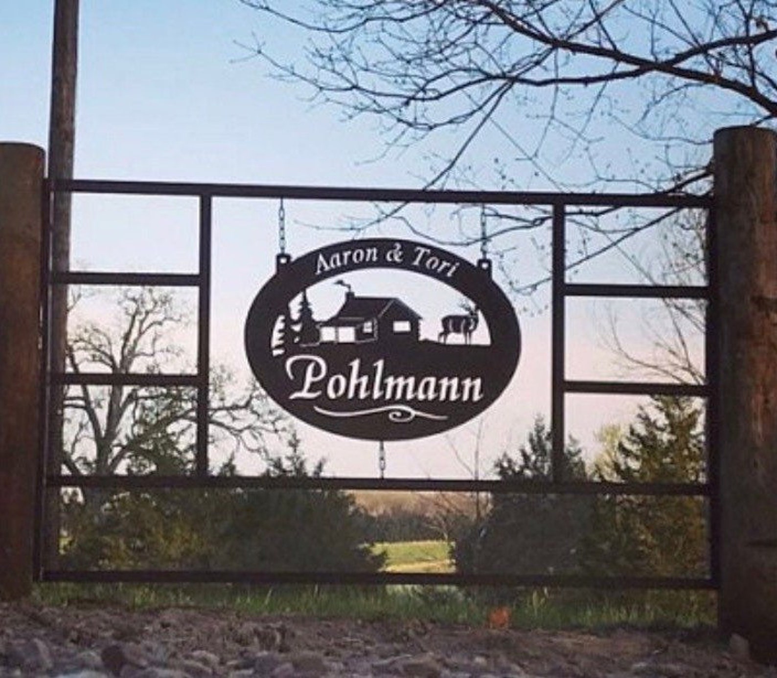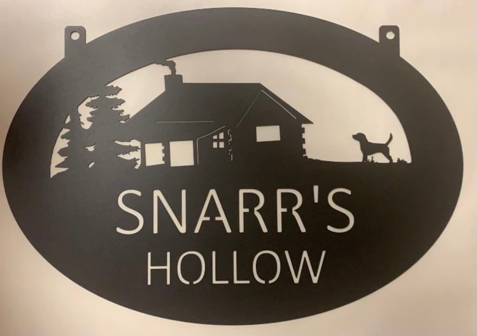 Metal laser cut sign personalized with your name finished in black powder coat ,measures 26"". Or also available in 36"x 26" or 4".