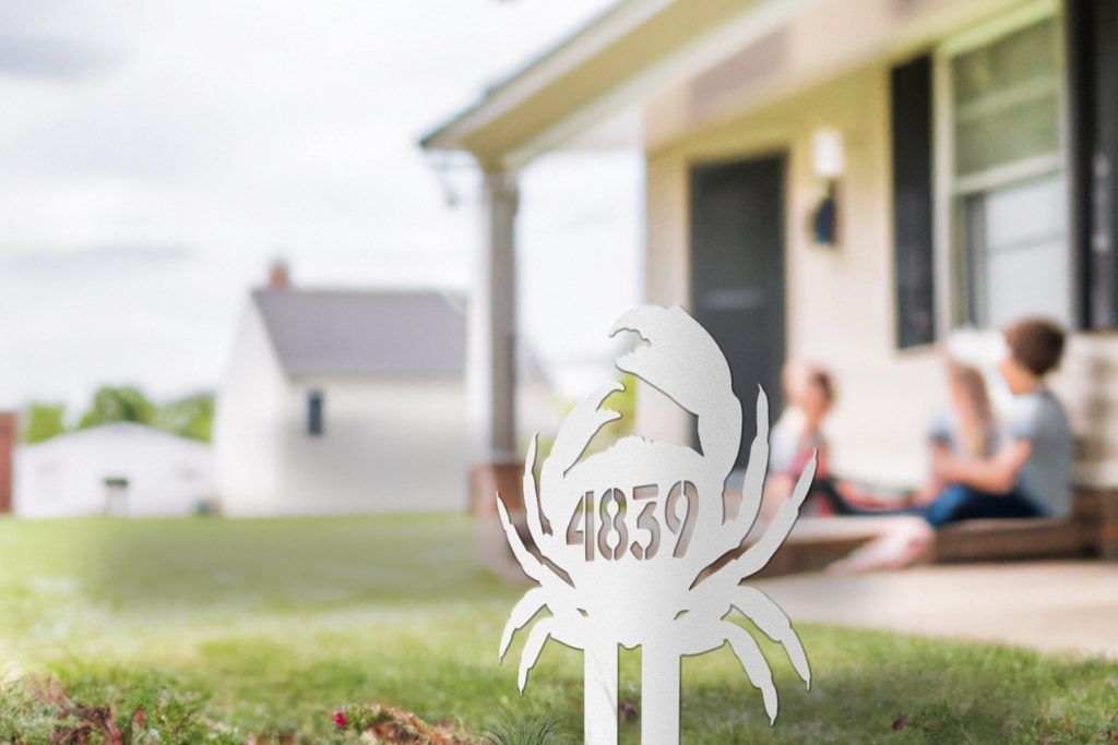 Outdoor weatherprooftMetal Crab AddresstCrab Address Signtfor Front Door PorchtBeach House NumbertCoastal AirBNBtYard Address SigntGround With StakestStreet Number SignstDriveway RocktMailbox NumberstNautical OceantPalm Trees Fish
