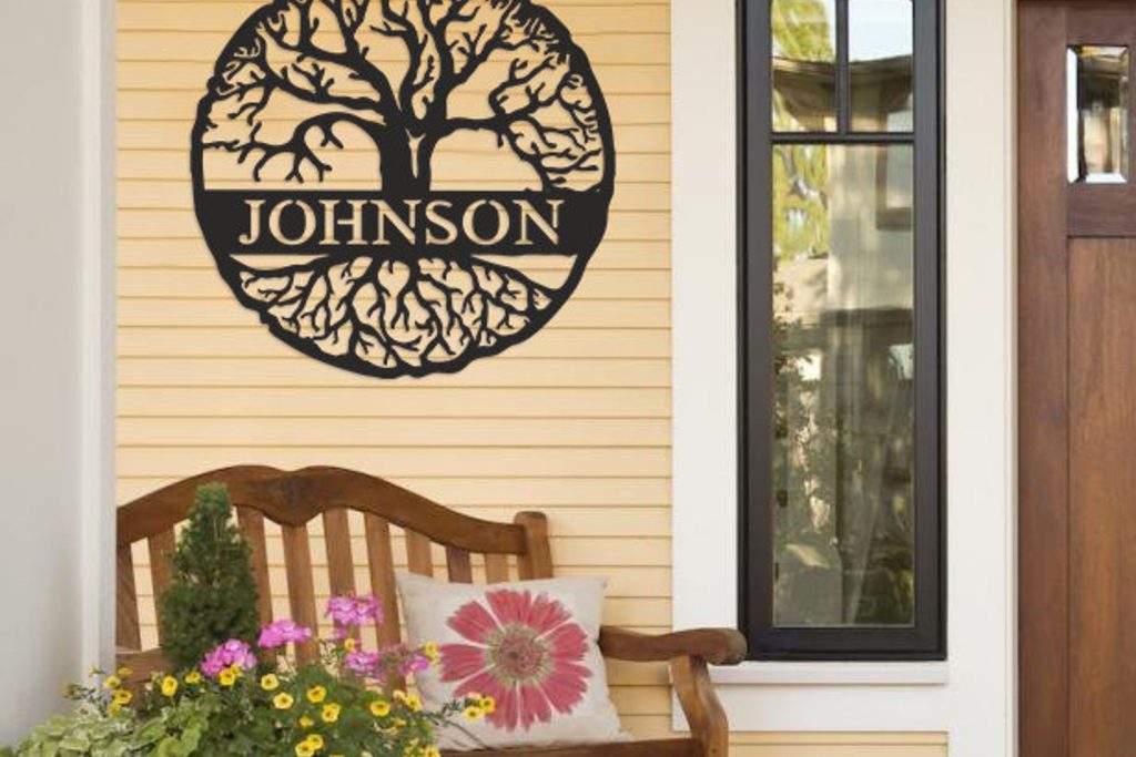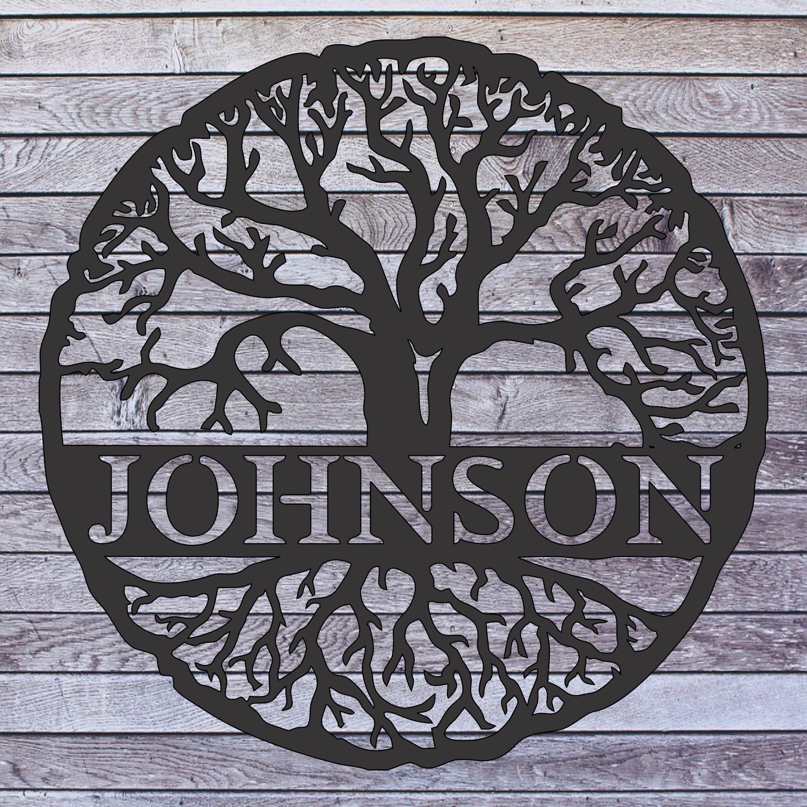 This hand crafted Family Tree Monogram comes in 3 sizes, ranging from 20" x 20" to 30"". It is Laser Cut from Premium Pickled & Oiled 16 gauge metal which is about the thickness of a nickel and powder coated with a low gloss mini textured exterior black finish and can be used inside or outside.Just leave us the name you want in the text section and we will take care of the rest. This is a gift that will last a lifetime! Guaranteed!