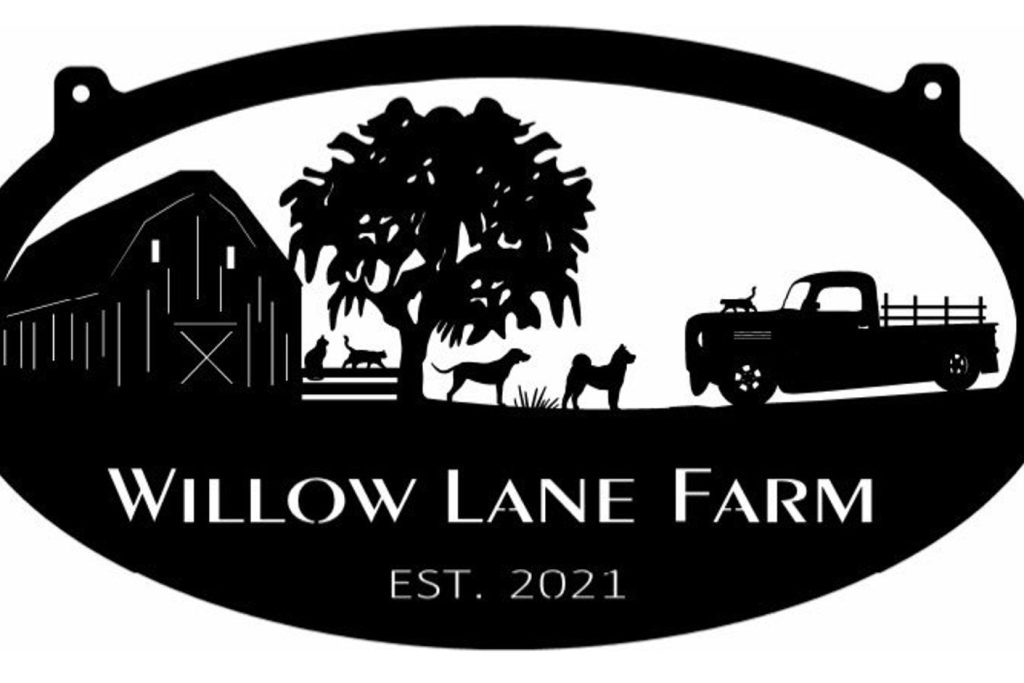 Rustic, personalized metal sign with farmyard scene . Measures 3 ftx 20" or 48