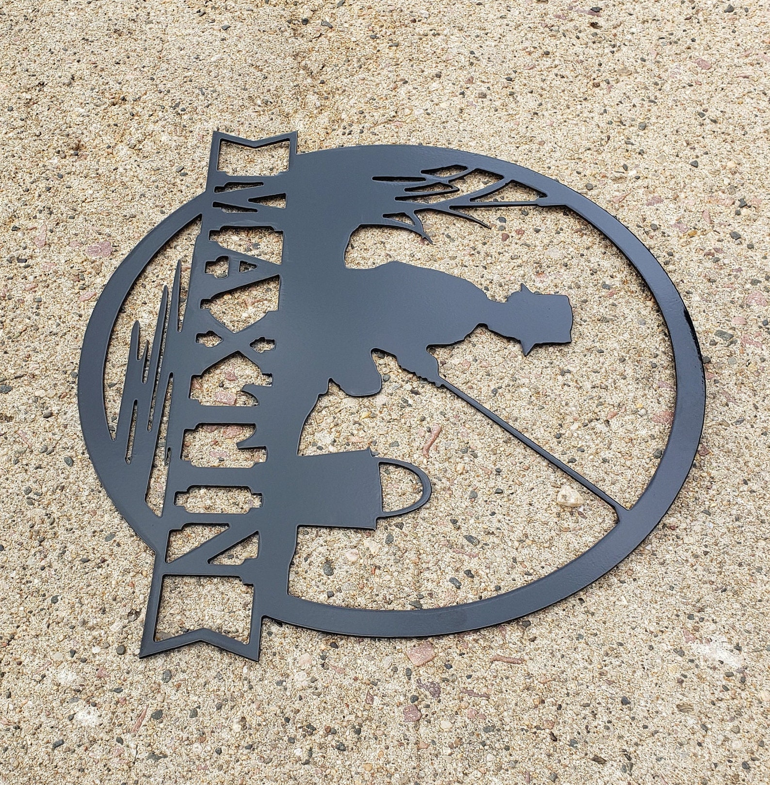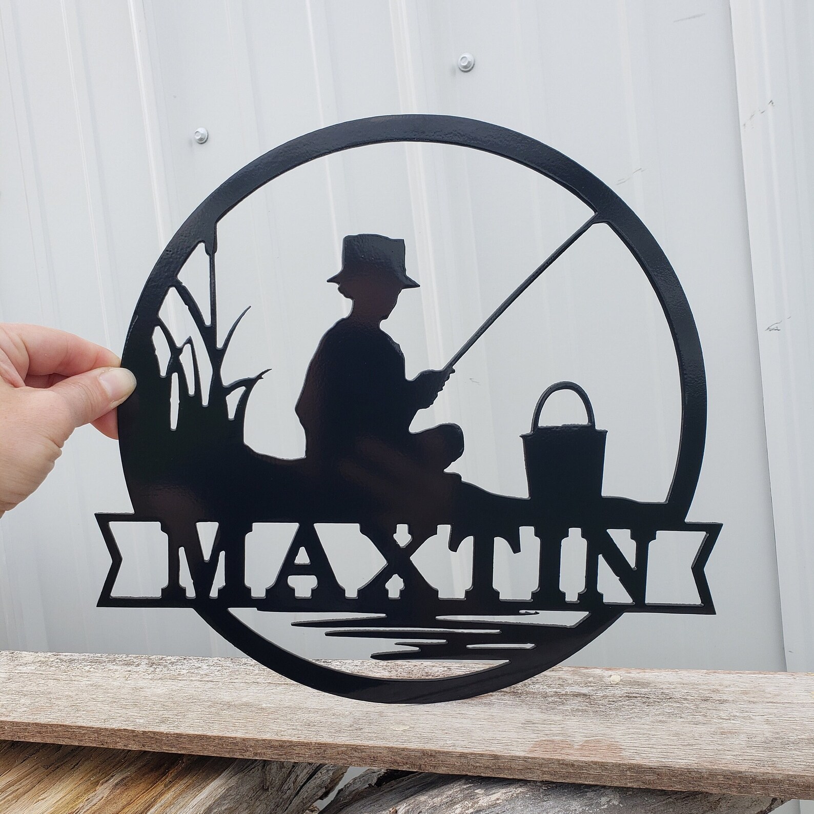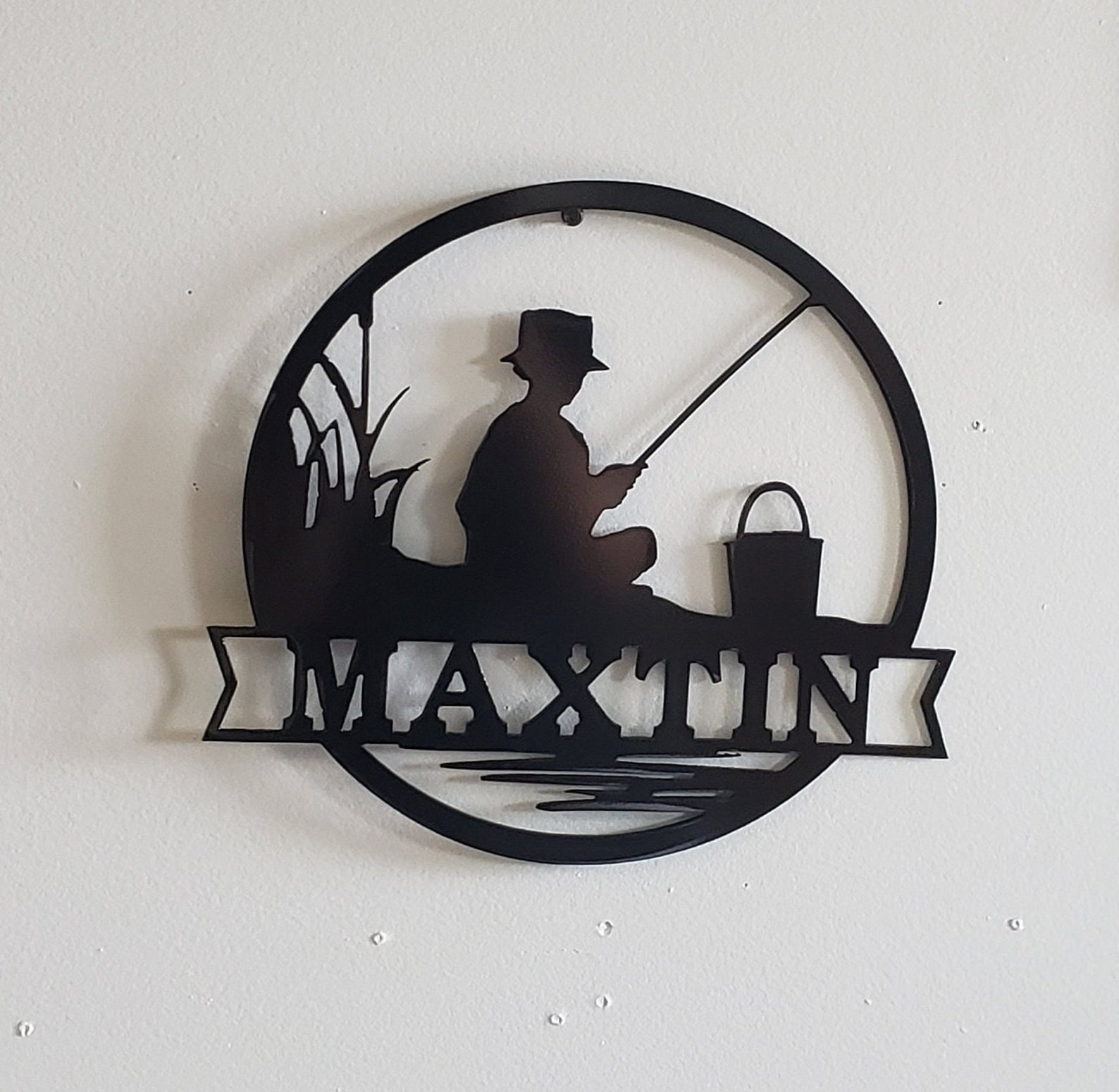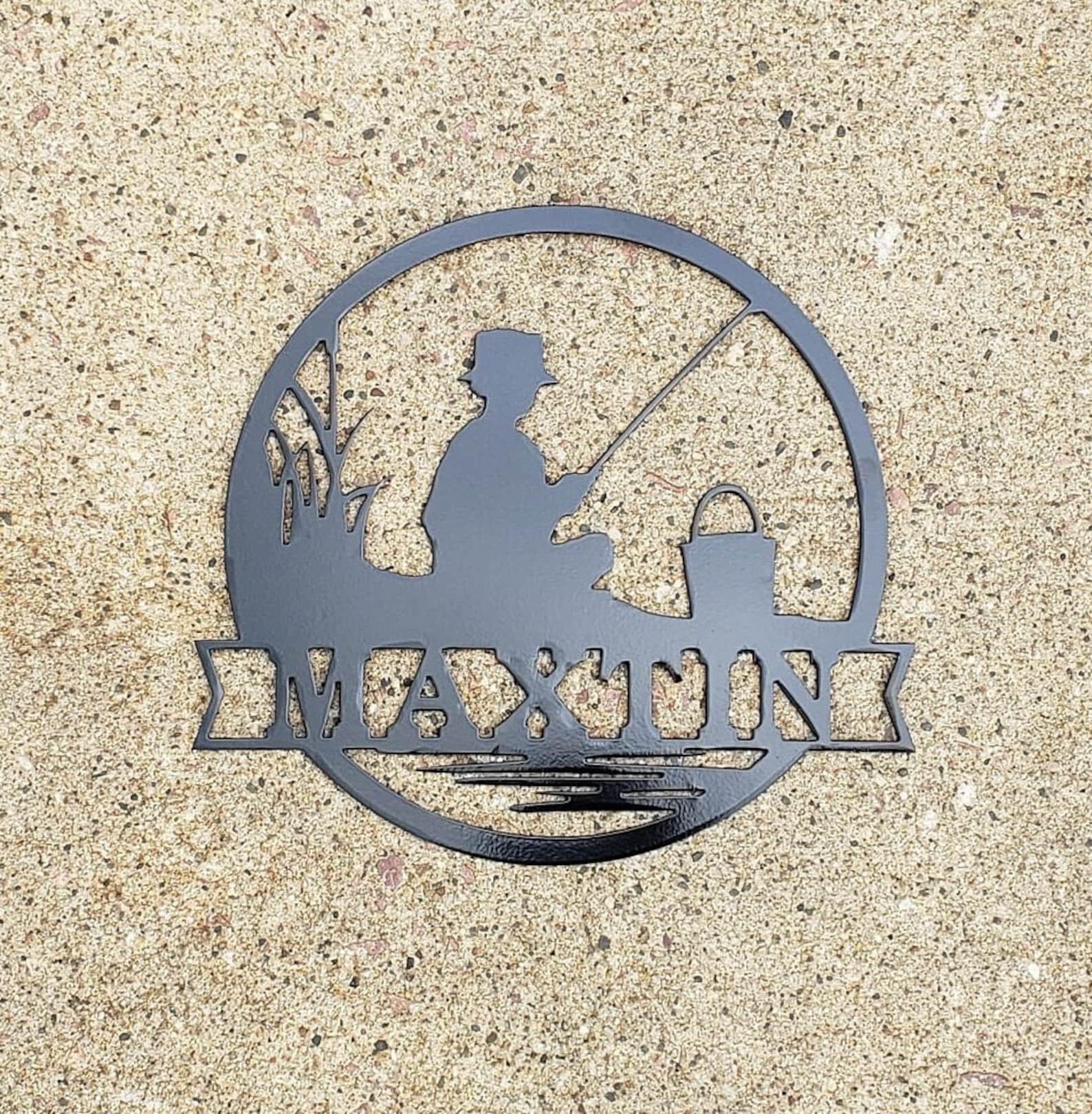 This hand made metal name sign makes a great gift for fishermen. Put it up in the cabin or on your bedroom door. This fishing sign is sure to spread joy to all.