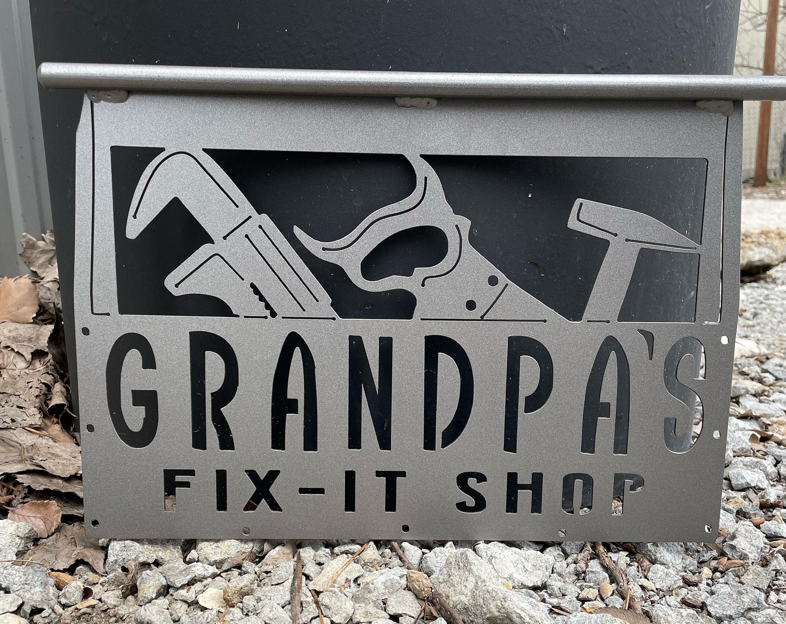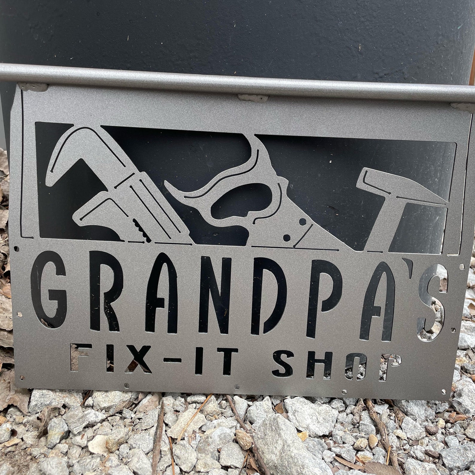 Be the first to review “Metal Grandpa’s Fix-it Shop Sign – Custom Name”