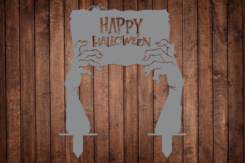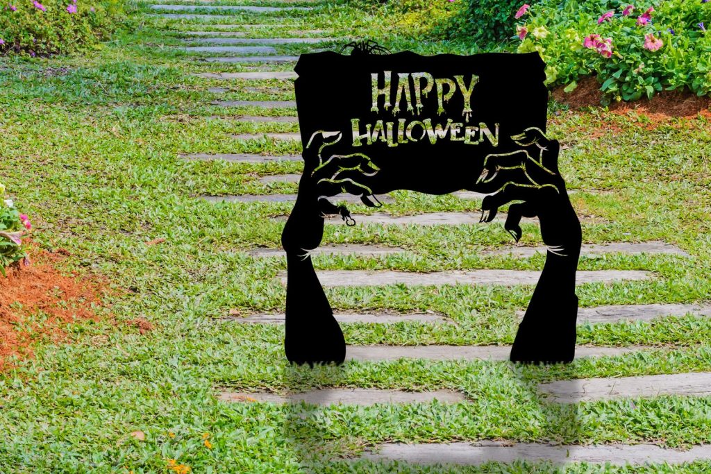 Metal Happy Halloween Garden Sign, Zombie Hands Decor, Cemetery Halloween Garden Stakes, Grave Yard Art, Outdoor Sign, Metal Halloween Gift