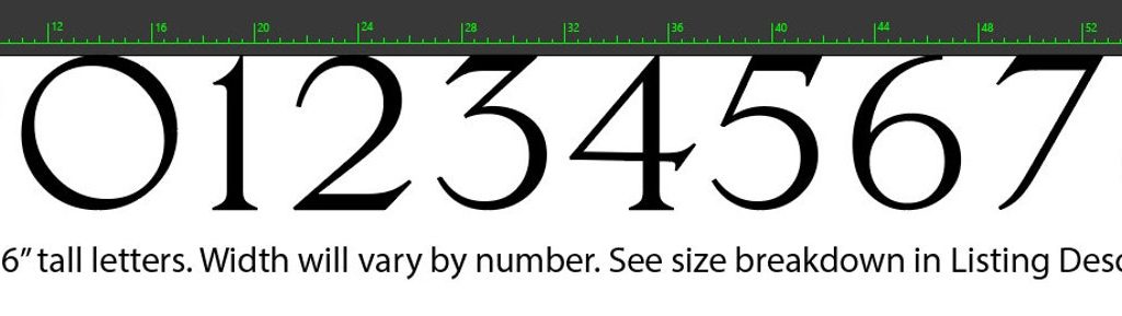 This listing is for 5, 6", 7" or 8" tall numbers. The width measurement will vary by number. Below is a list for reference (may vary slightly). If you are trying to work with a specific sized space and are unsure if this size and font style will fit, please message us and we will help determine if they will fit.