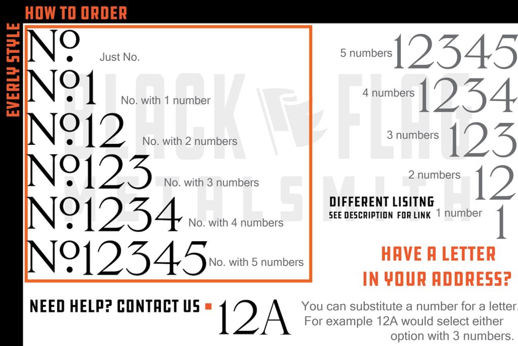These numbers come with our premium exterior grade powder coating. Our standard colors are Satin Black, Satin Copper, Gold|Brass or Metallic Bronze.