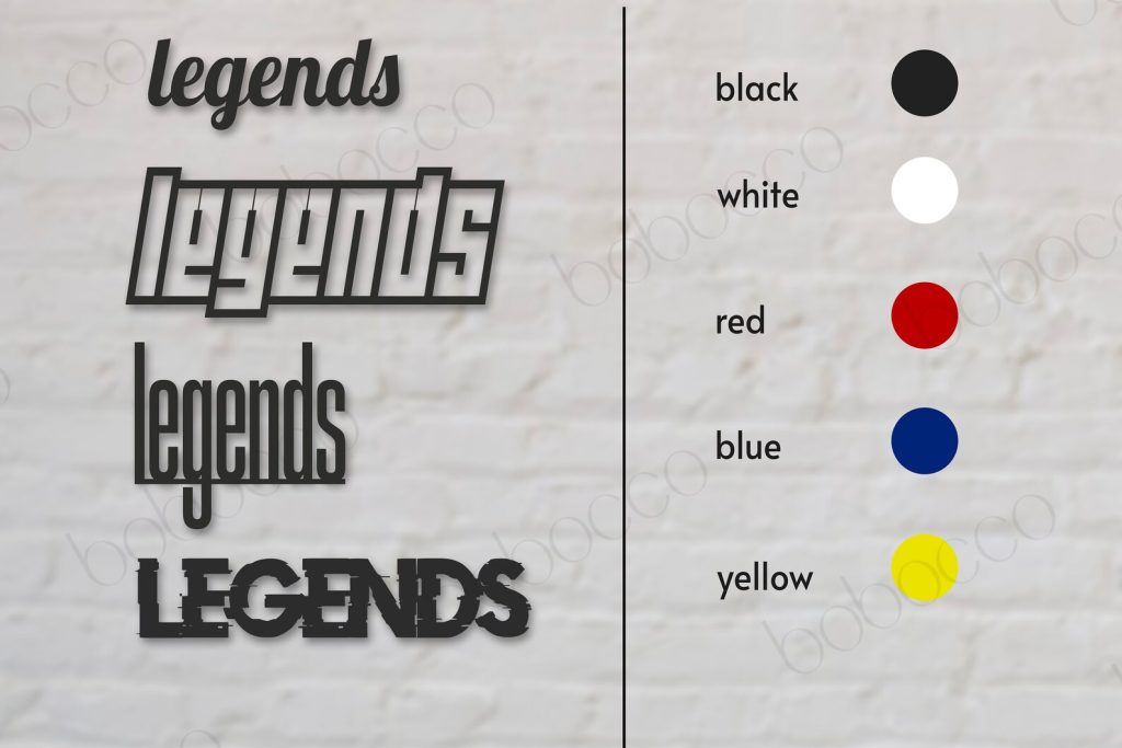 Our Legends sign is made from high-quality metal and is available in five different sizes, ranging from 10 inches to 55 inches. Choose from five different colors, including black, white, red, blue, and yellow, to match your decor. Each sign is laser cut for precision and features a contemporary letter design.