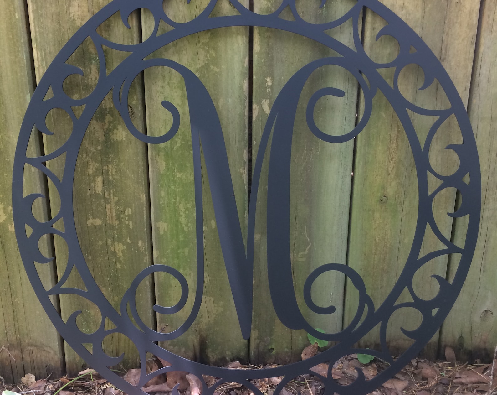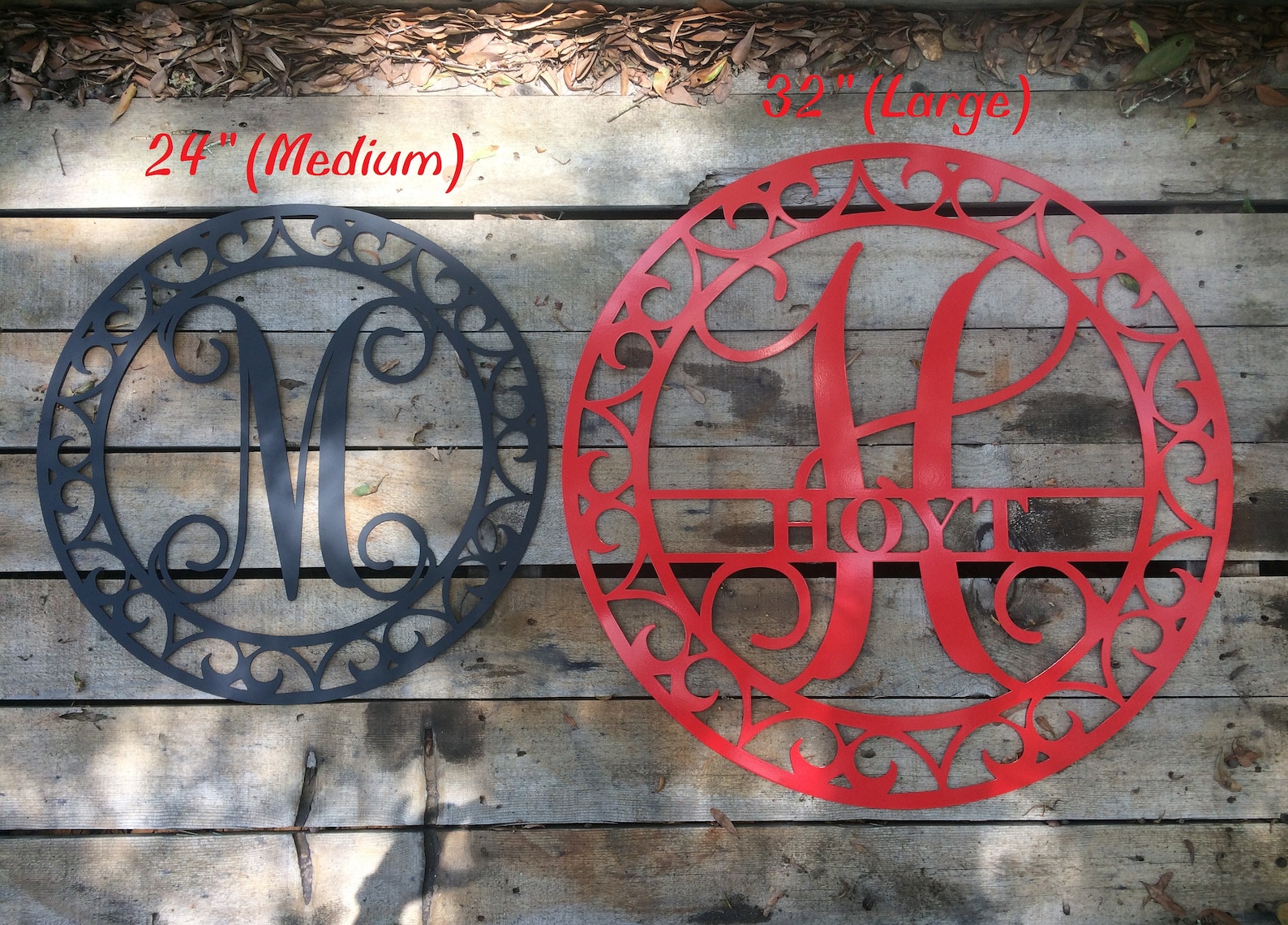 This listing is for ONE 24" diameter Metal Single Letter Monogram with Scroll Border Wall/Door Hanger. This is laser cut and made to order. A perfect addition to any indoor/outdoor home decor!