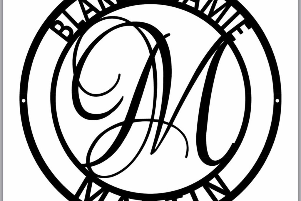 Metal Monogram Sign, Laser Cut, Black Textured Finish