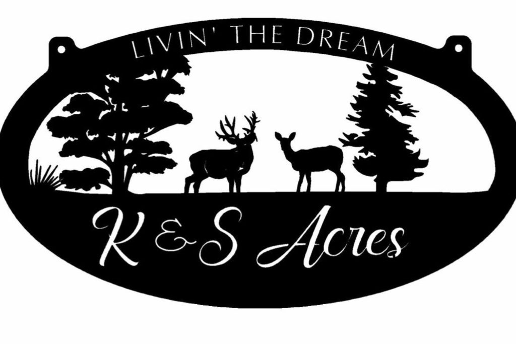 Rustic, personalized metal sign made of 14 gauge metal. Measures 48"". Powder coated black or beautiful rustic acid finish and clear coated . Makes a very attractive entrance sign.Incl with the price is customizing with your name.Our finish is a baked on powder coat for a very long lasting durable finish.