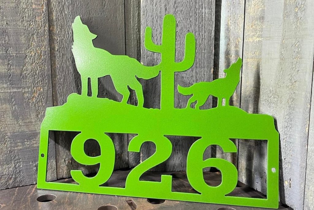 Be the first to review “Metal Wolf & Cactus Southwestern Address Sign”