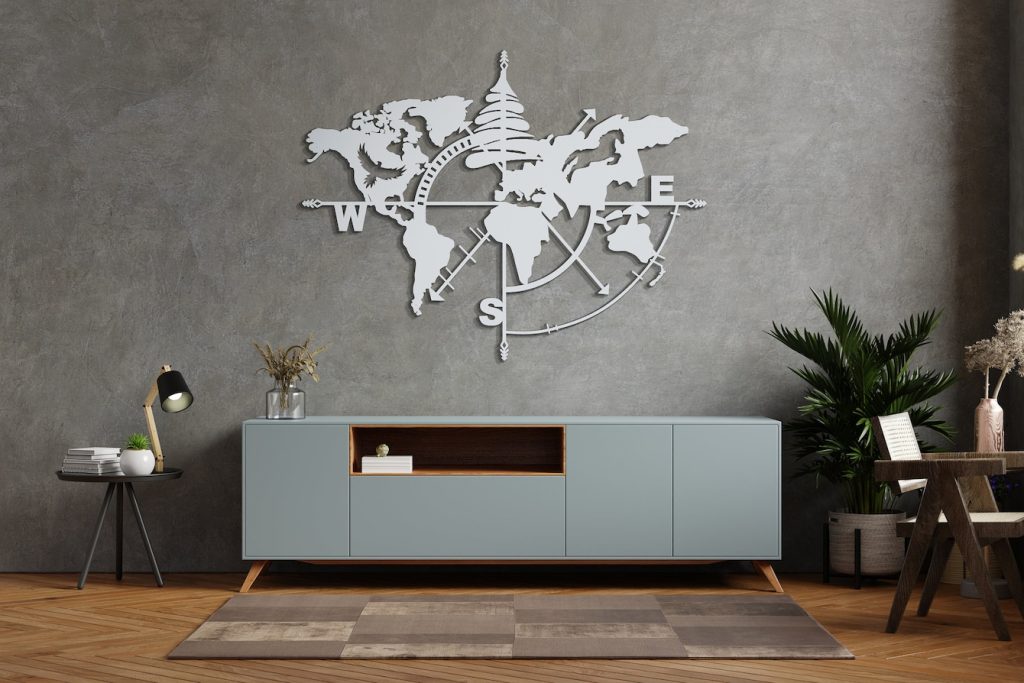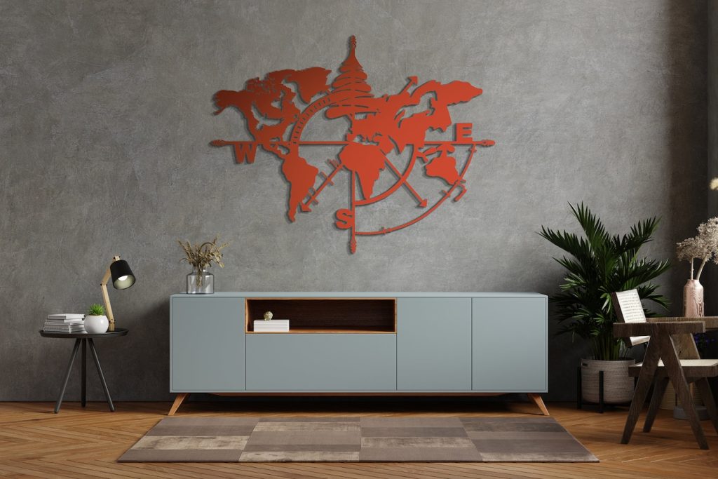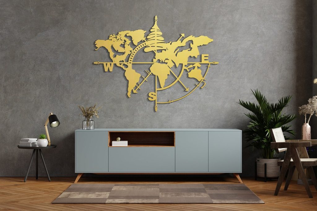 Be the first to review “Metal World Map with Tree and Compass Design”